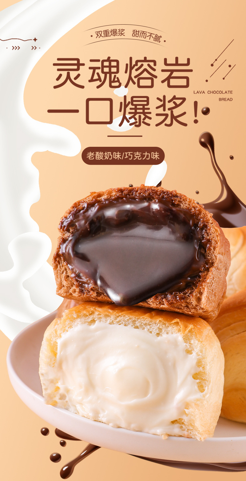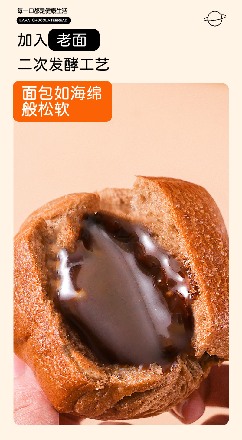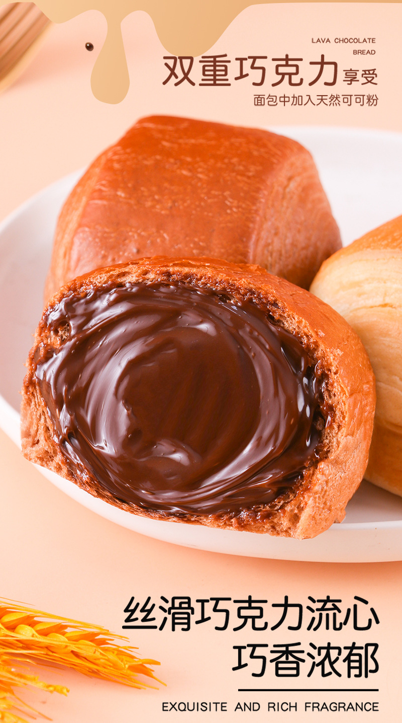 【蓬松绵软!爆岩巧克力面包】巧克力味 老酸奶味,鲜香四溢 酸酸软软 口感细腻 萦绕舌尖!爆浆松软老酸奶夹心西式糕点欧包流心学生营养早餐Y