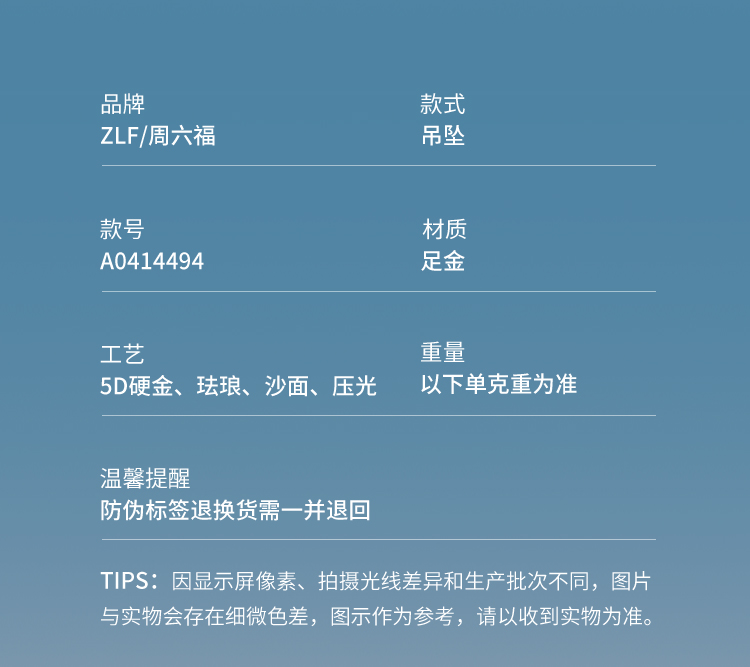 周六福黄金吊坠女款5d硬金定价足金珐琅吊坠