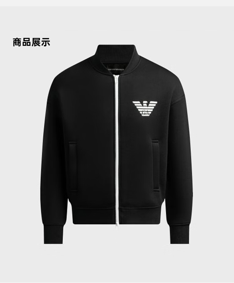 EMPORIO ARMANI 阿玛尼 男士徽标印花拉链长袖卫衣 黑色 6L1MM3 1JUWZ 0999