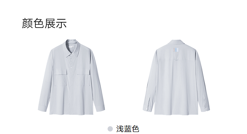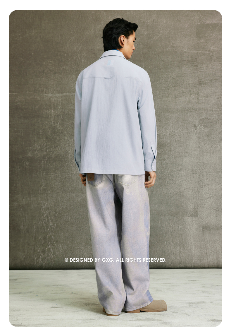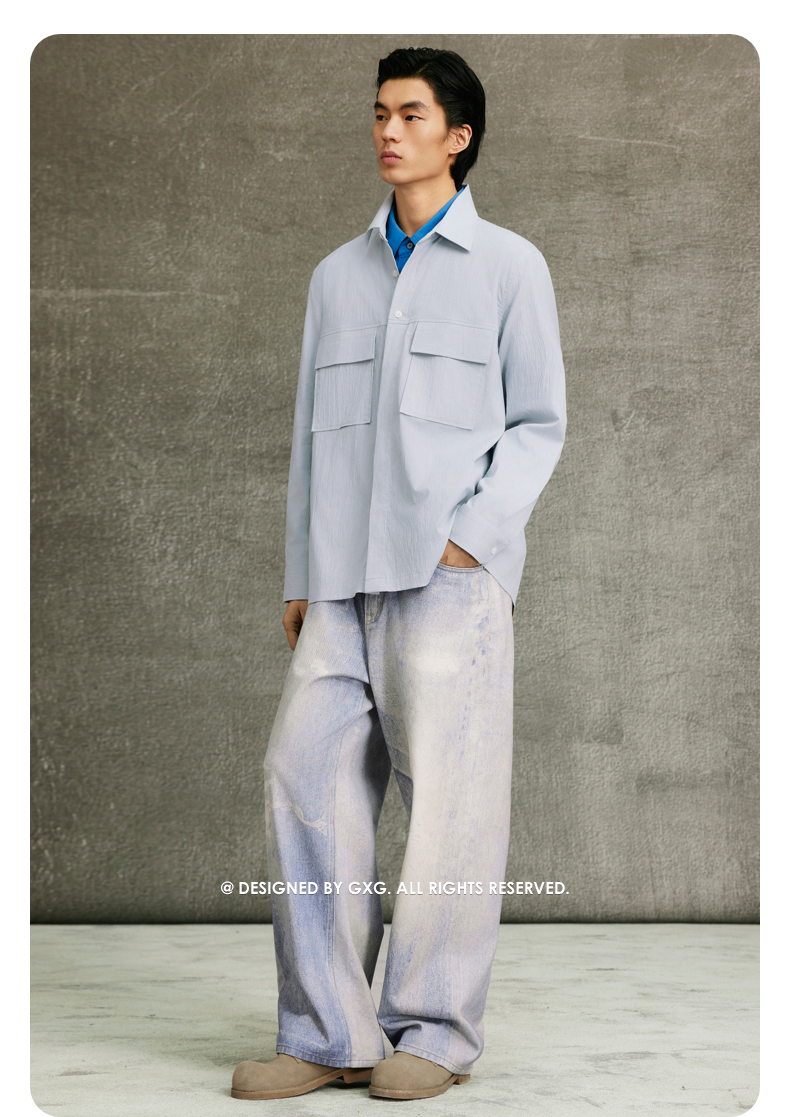 GXG男装 浅蓝色泡泡纱简约时尚翻领长袖衬衫25春季热卖G25X031004