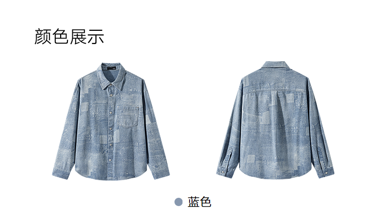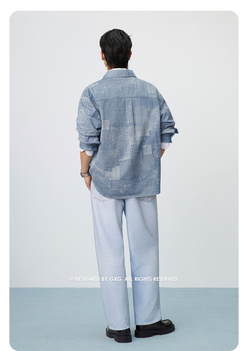 GXG男装 蓝色数码印花简约时尚外穿式牛仔衬衫外套 25年春热卖