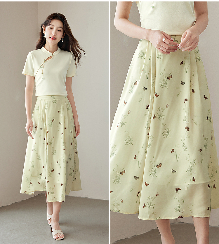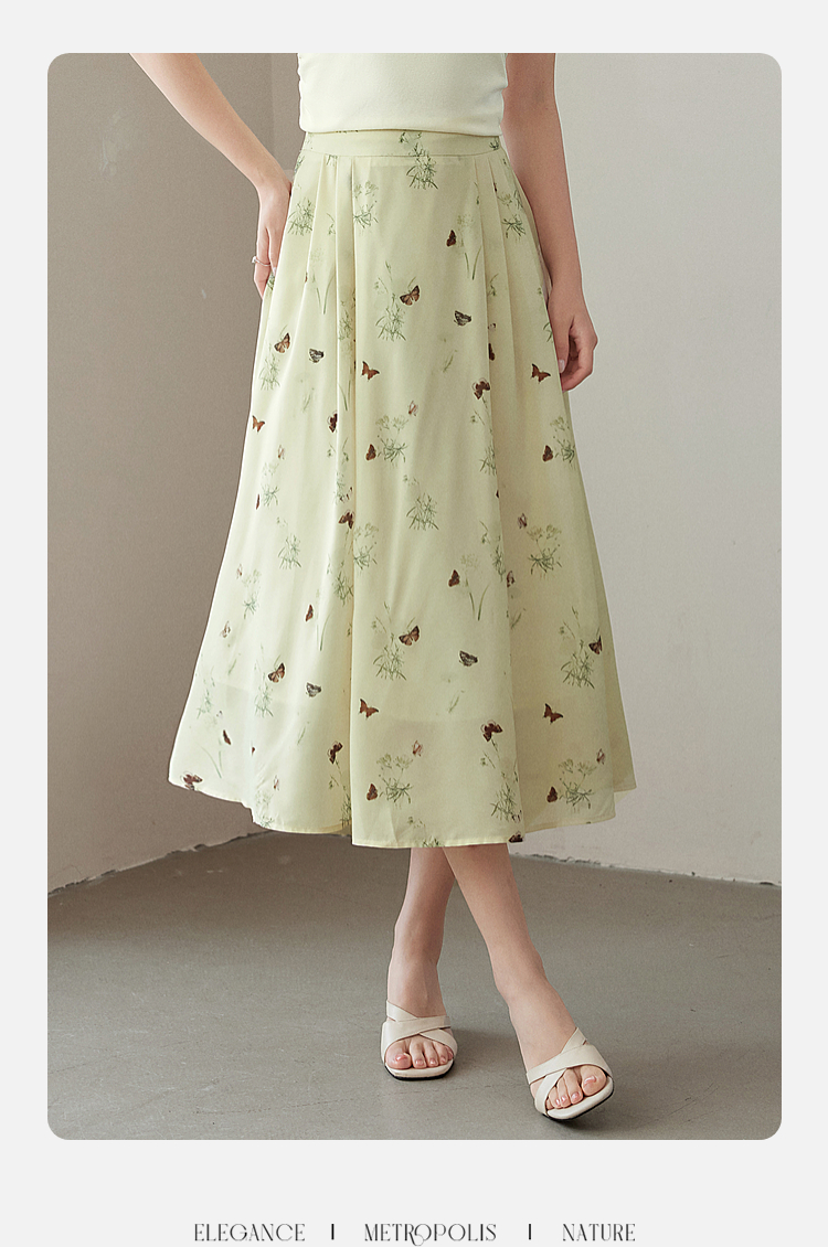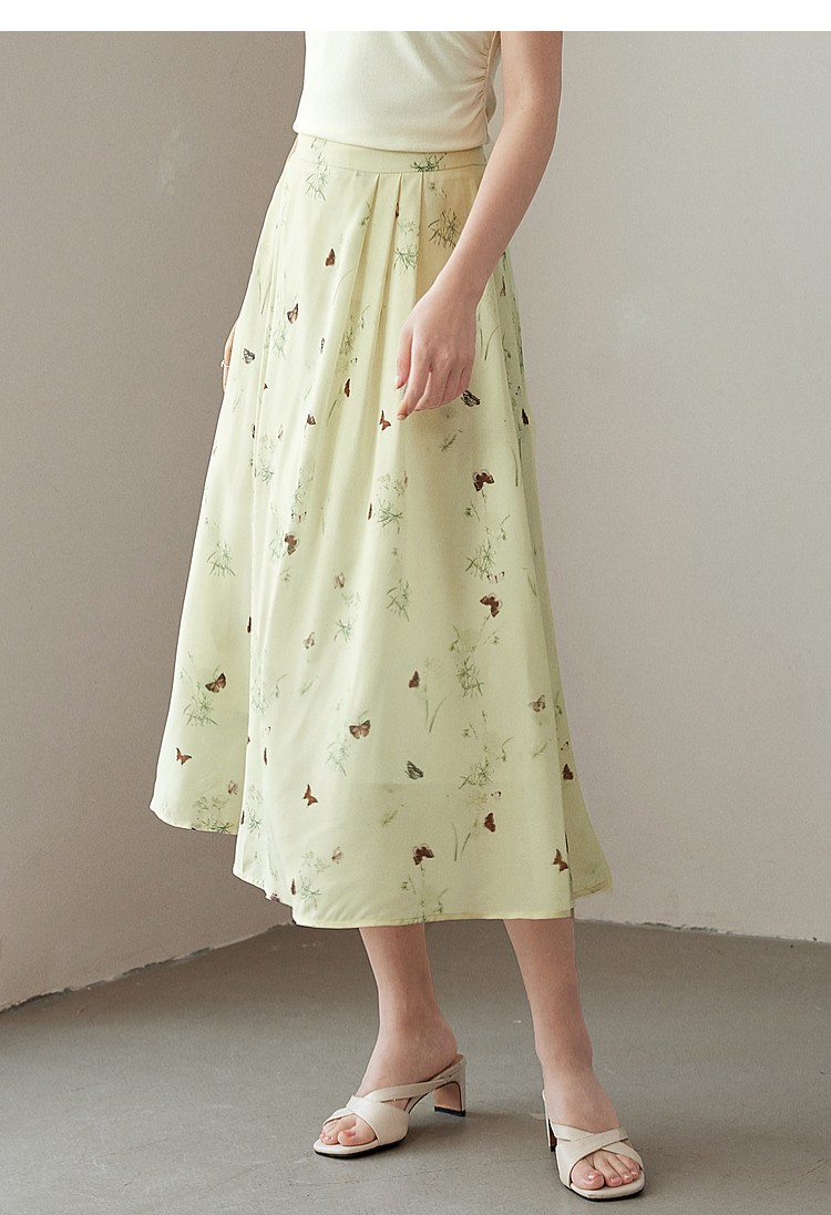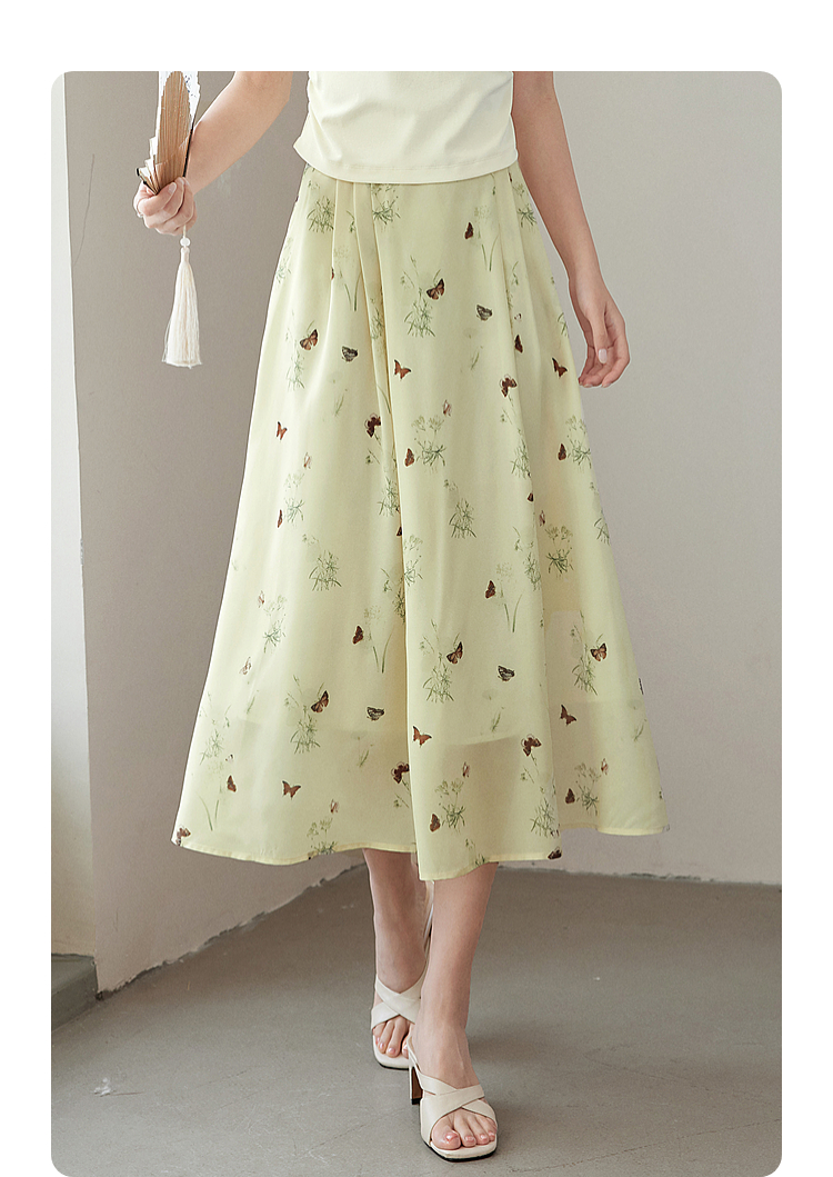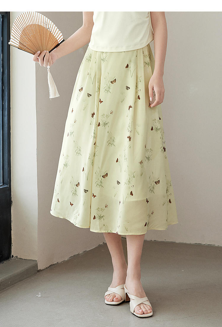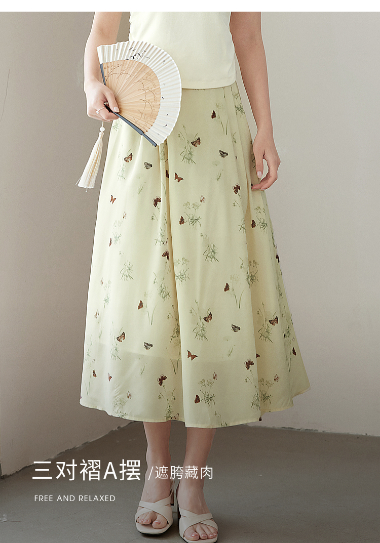 【专属特价】熙世界新中式蝴蝶印花半身裙夏季新款气质雪纺a字裙改良马面裙