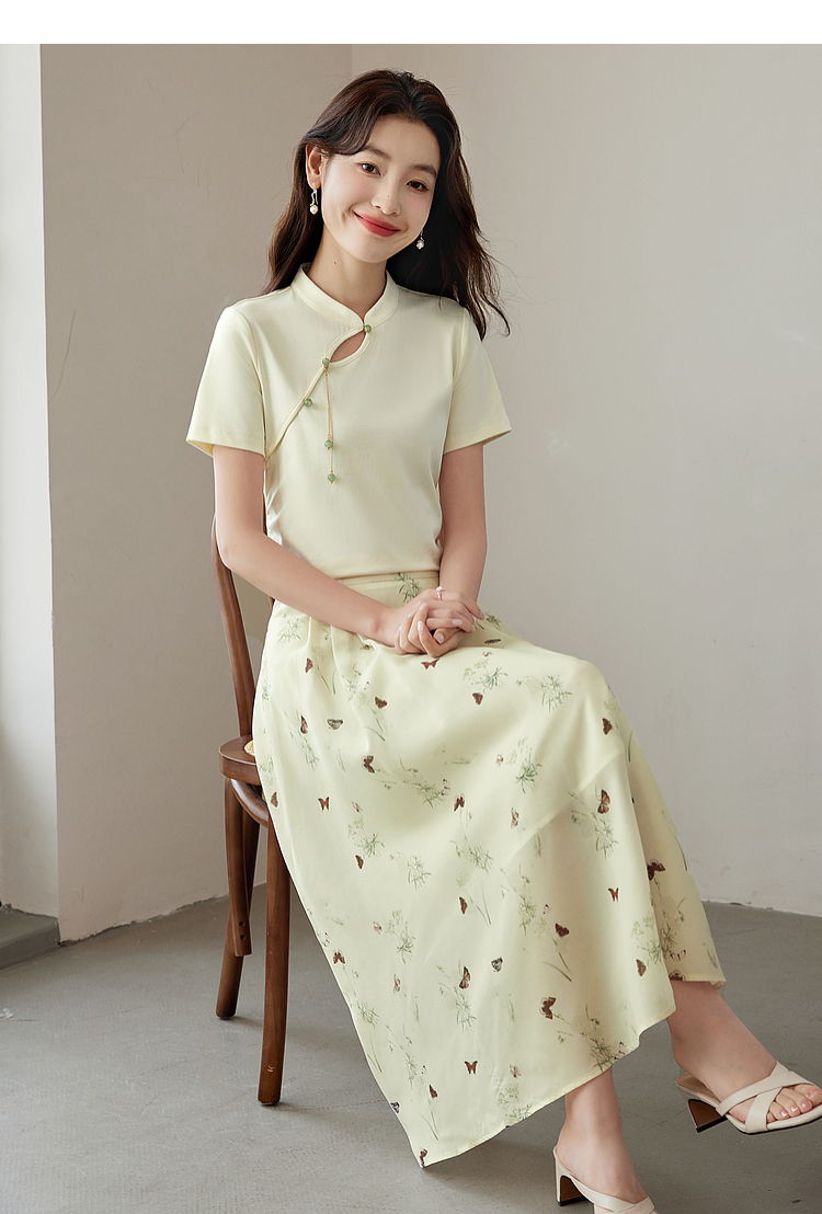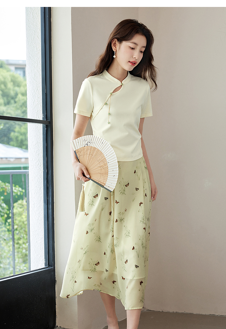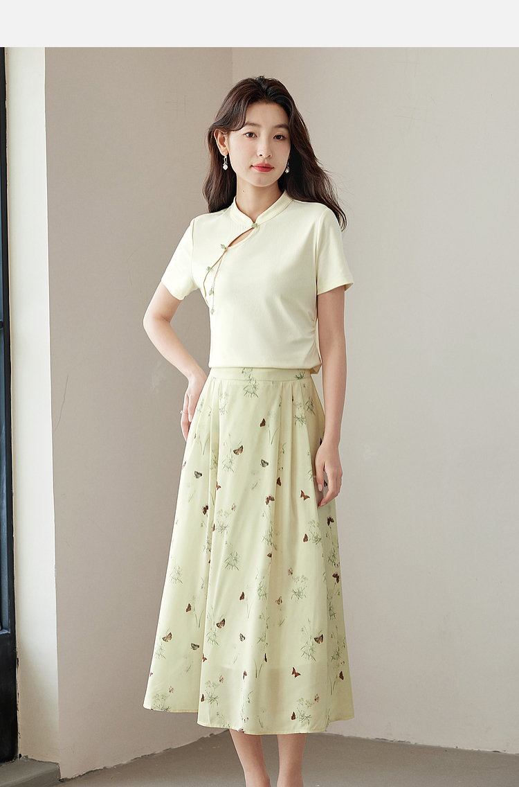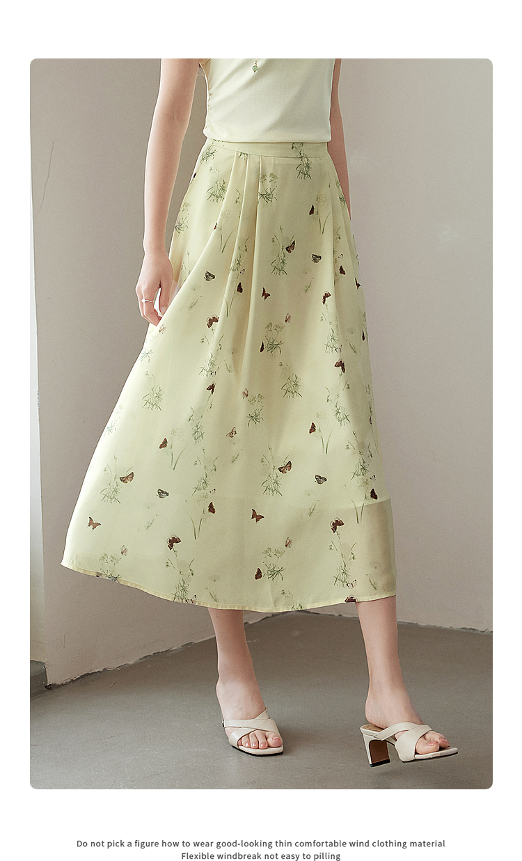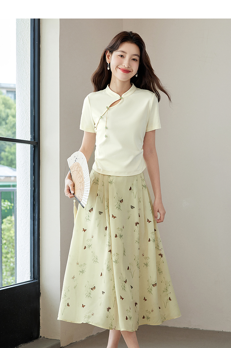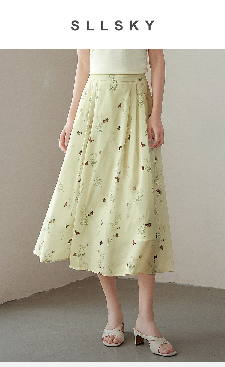 【专属特价】熙世界新中式蝴蝶印花半身裙夏季新款气质雪纺a字裙改良马面裙