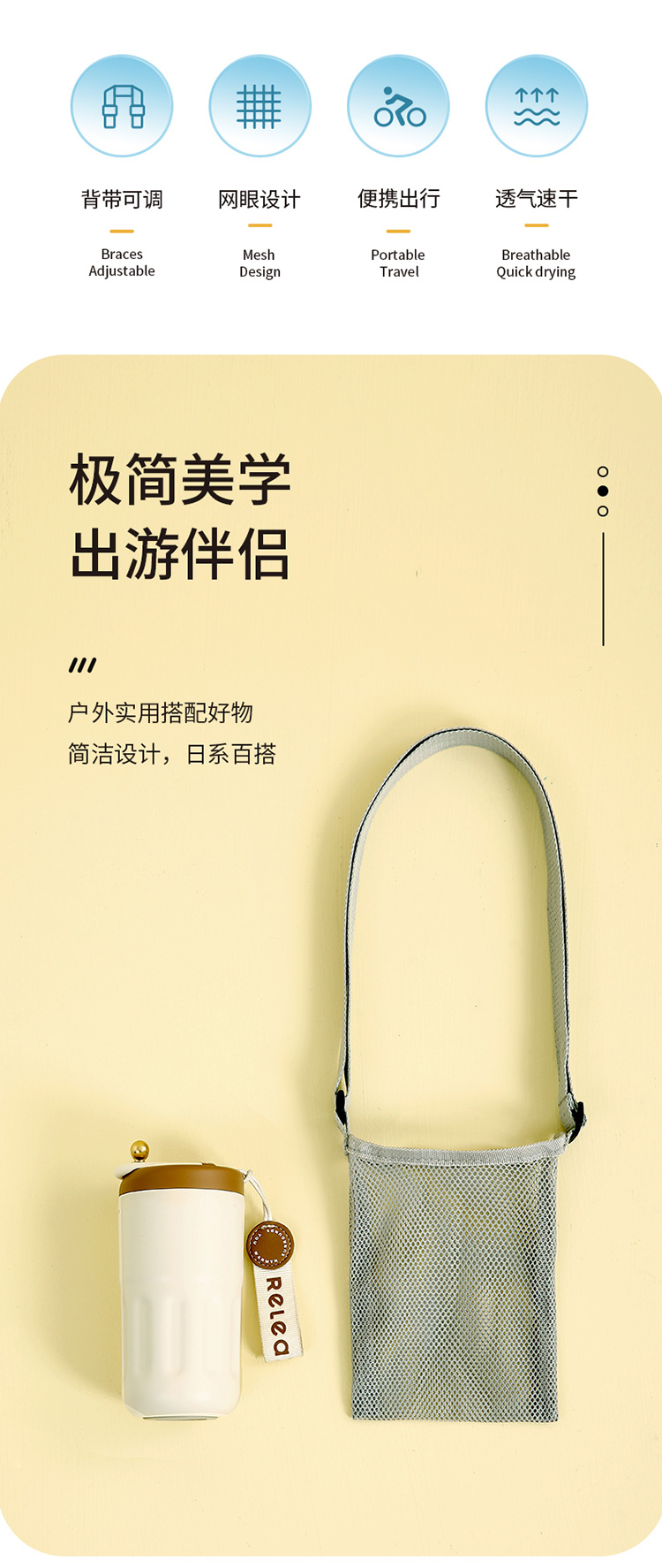 FaSoLa 饮料瓶背带保温杯套斜挎便携手拎水壶包焖烧杯保护套水杯收纳袋