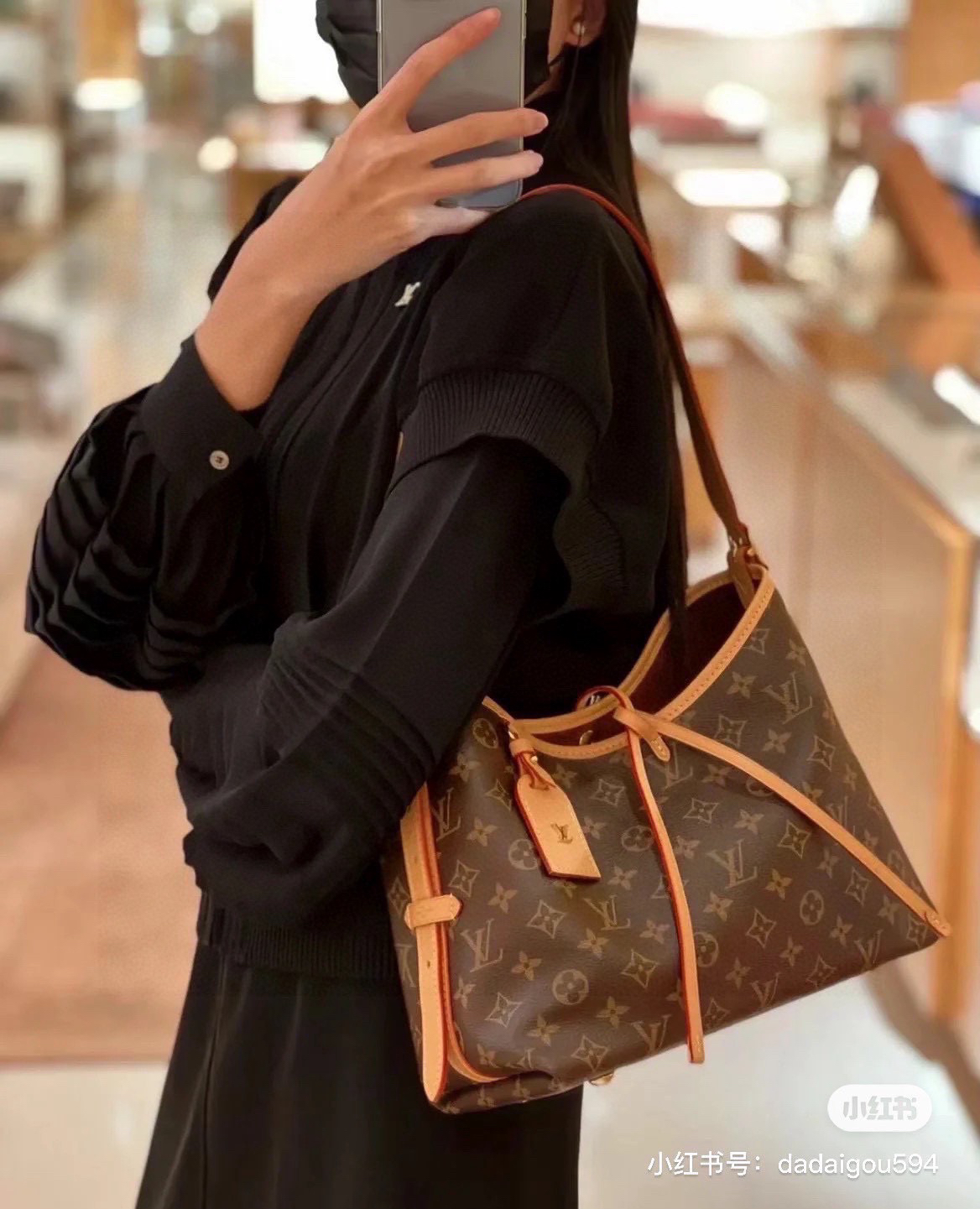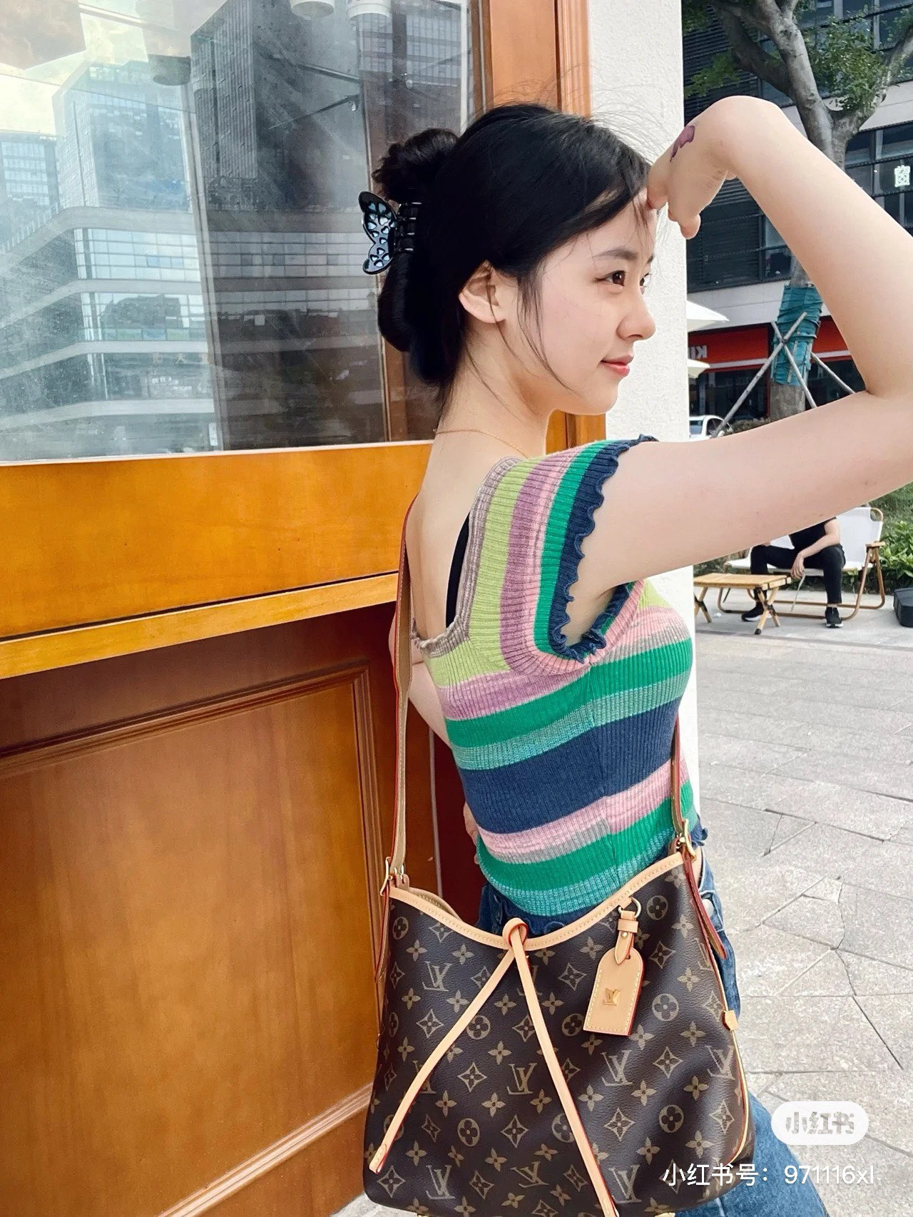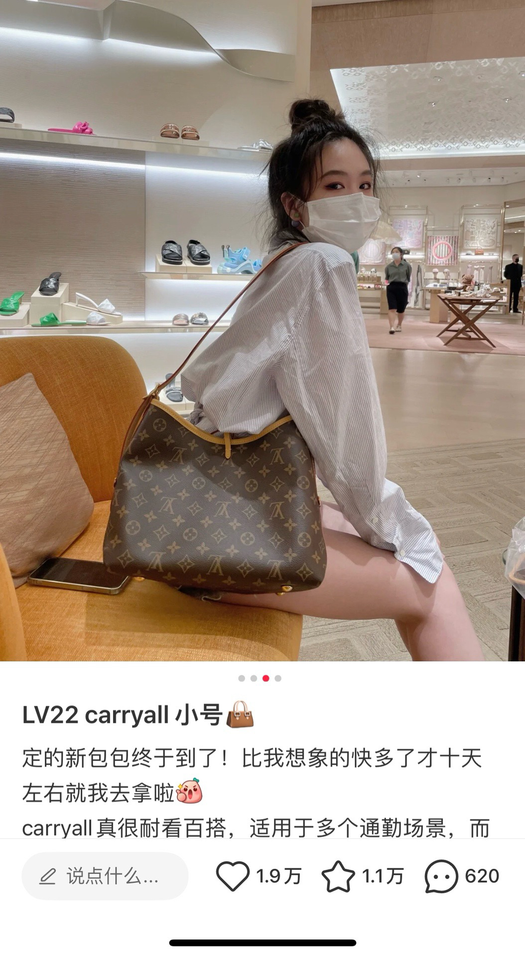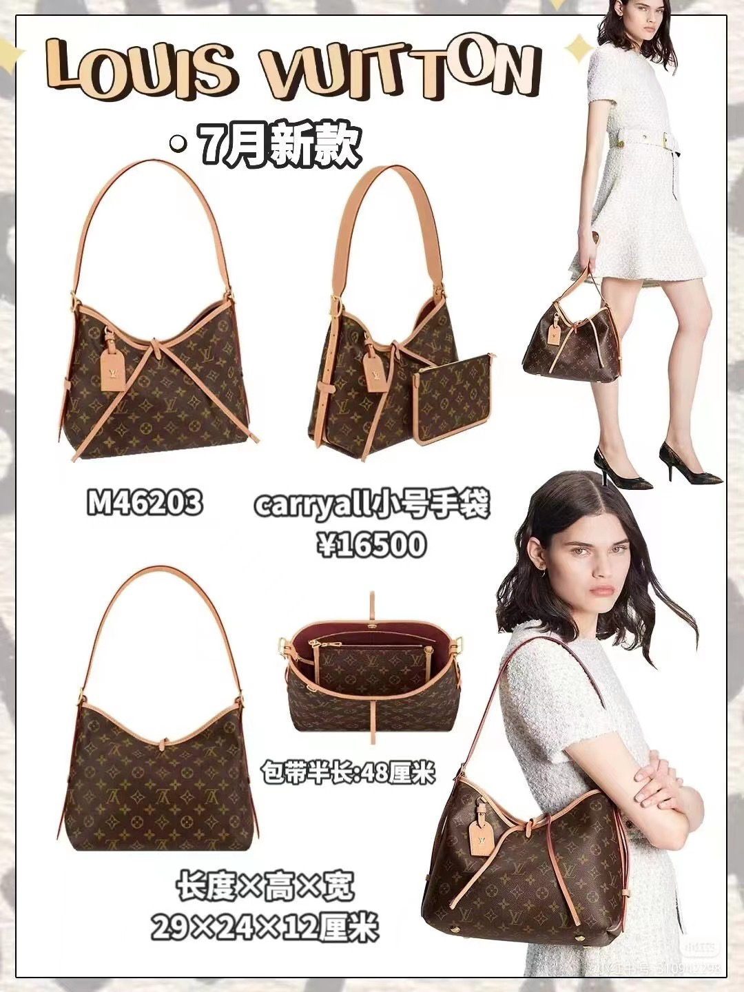 目前最火的购物袋系列 CARRYALL 手袋 也是tote包,整个包包非常随意又自然,一包N用,在网上目前搜索排行已经第一了!!可以说是接下来的大热门!因为它既可单独作为一只精致手拿包使用,亦可作为额外的口袋;最最主要的是上身好看,明快的内衬色调为 Monogram 经典帆布增加了更多活泼生动之感;轻便小巧,可拆卸调节手挽带。~