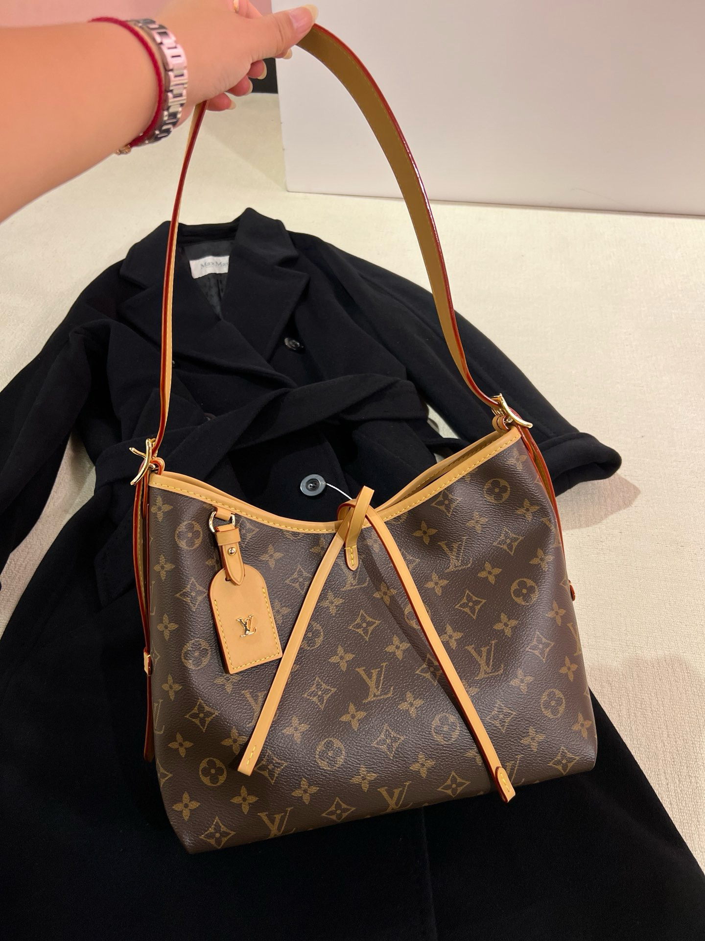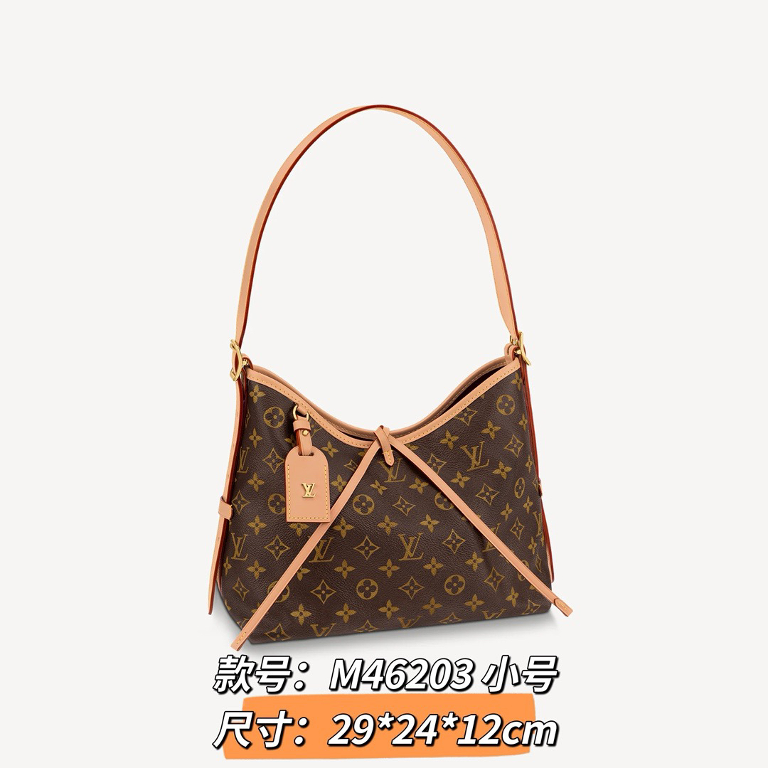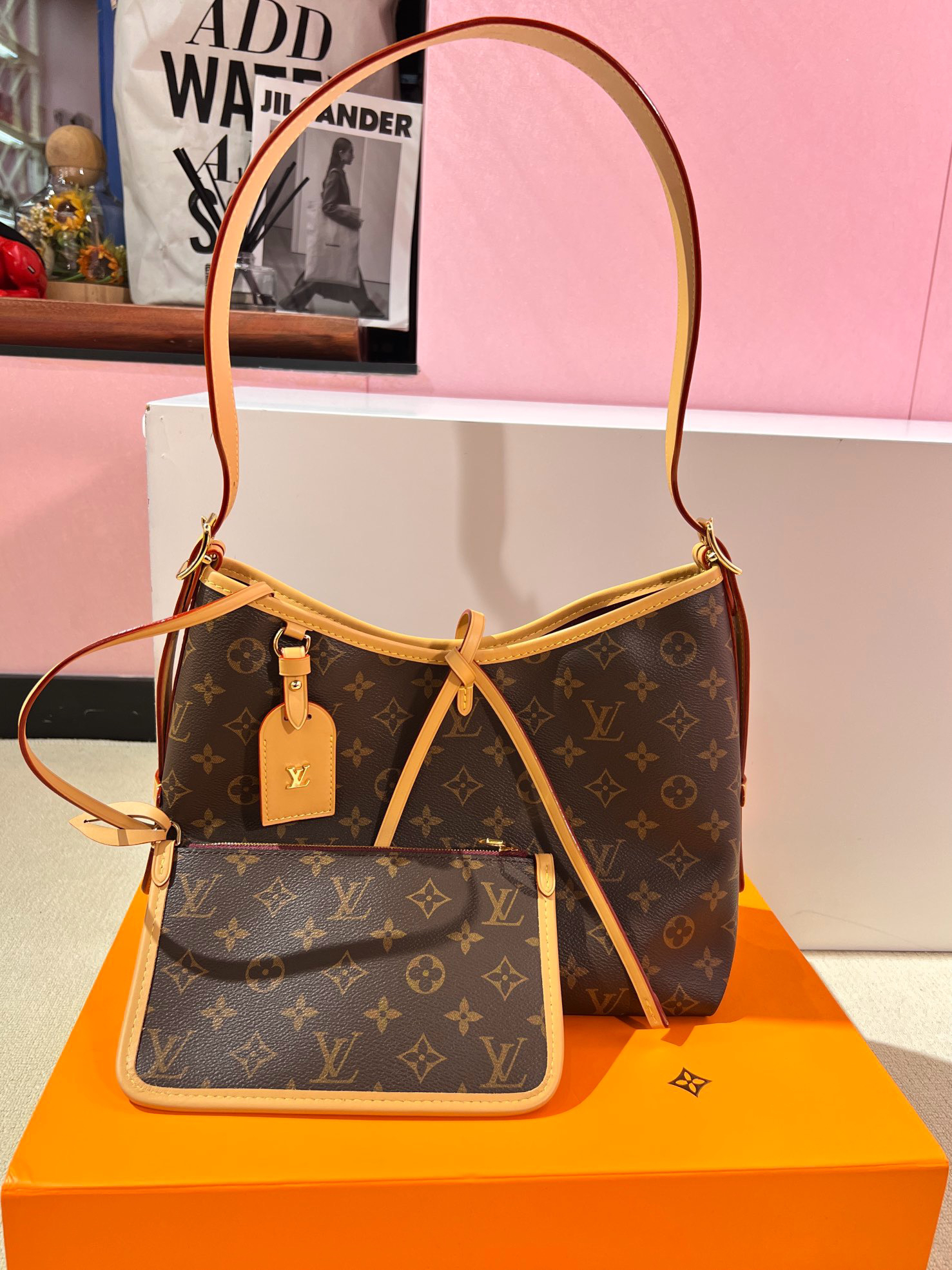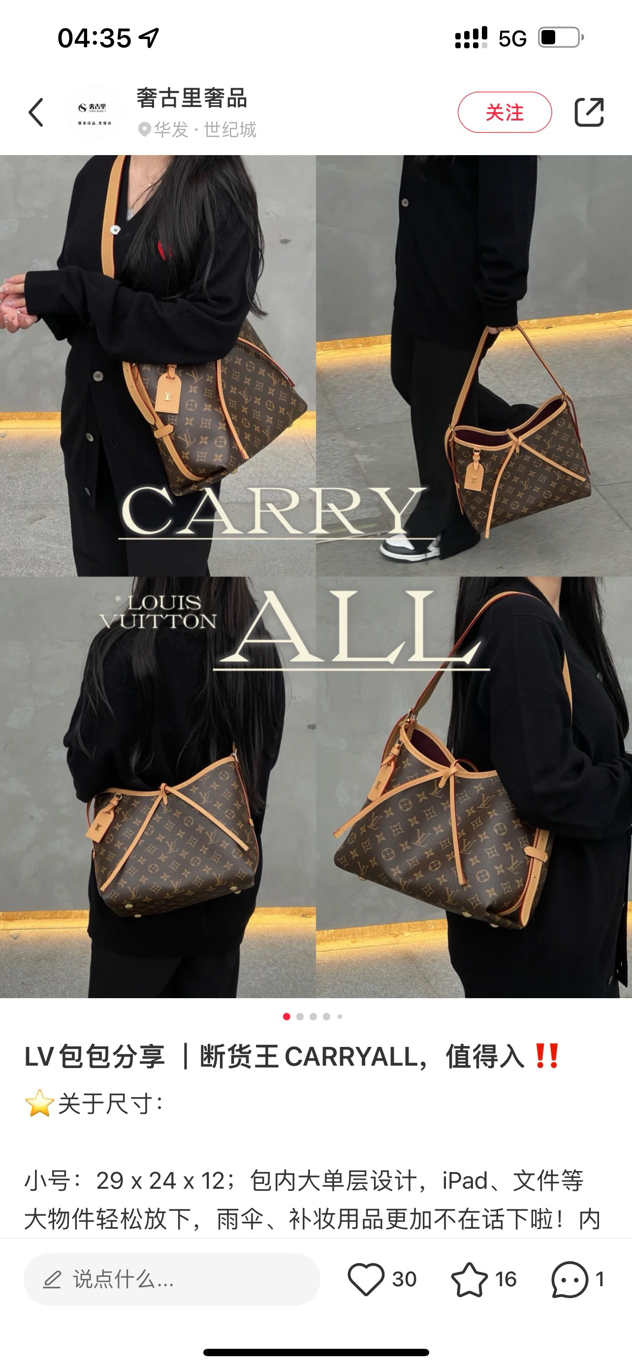 目前最火的购物袋系列 CARRYALL 手袋 也是tote包,整个包包非常随意又自然,一包N用,在网上目前搜索排行已经第一了!!可以说是接下来的大热门!因为它既可单独作为一只精致手拿包使用,亦可作为额外的口袋;最最主要的是上身好看,明快的内衬色调为 Monogram 经典帆布增加了更多活泼生动之感;轻便小巧,可拆卸调节手挽带。~