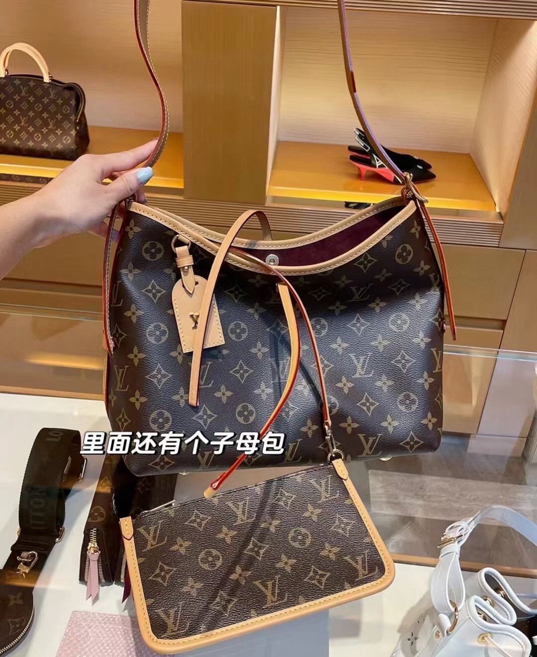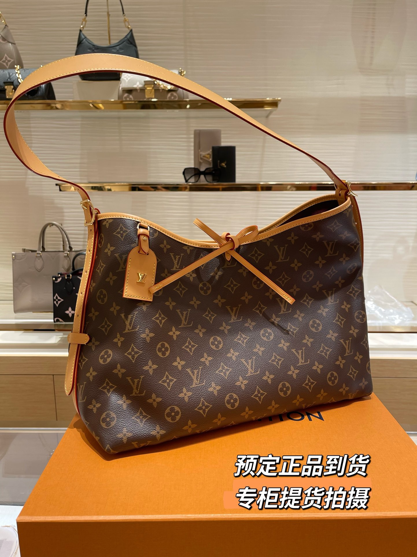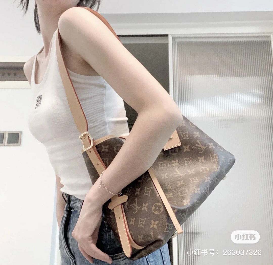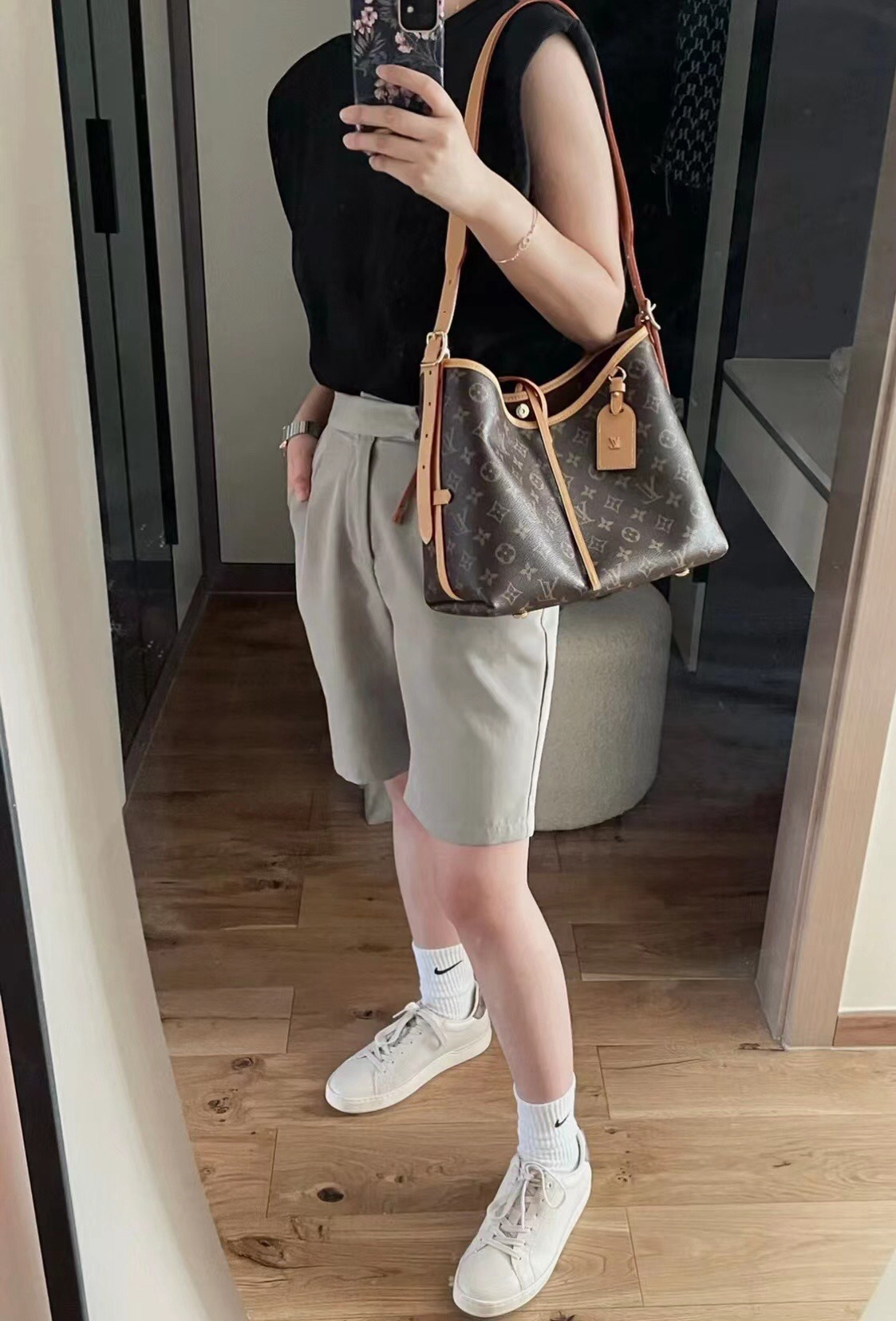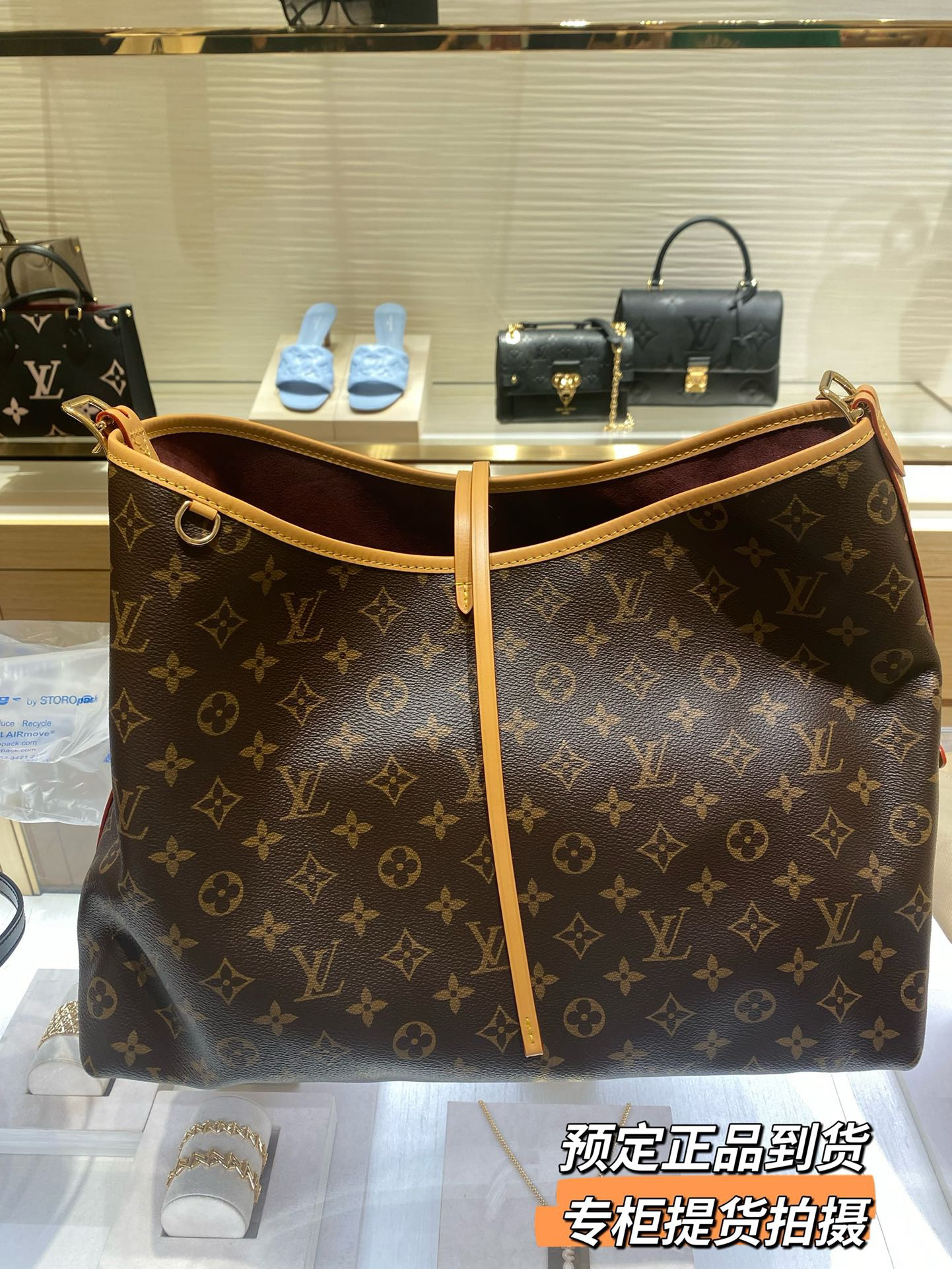 目前最火的购物袋系列 CARRYALL 手袋 也是tote包,整个包包非常随意又自然,一包N用,在网上目前搜索排行已经第一了!!可以说是接下来的大热门!因为它既可单独作为一只精致手拿包使用,亦可作为额外的口袋;最最主要的是上身好看,明快的内衬色调为 Monogram 经典帆布增加了更多活泼生动之感;轻便小巧,可拆卸调节手挽带。~