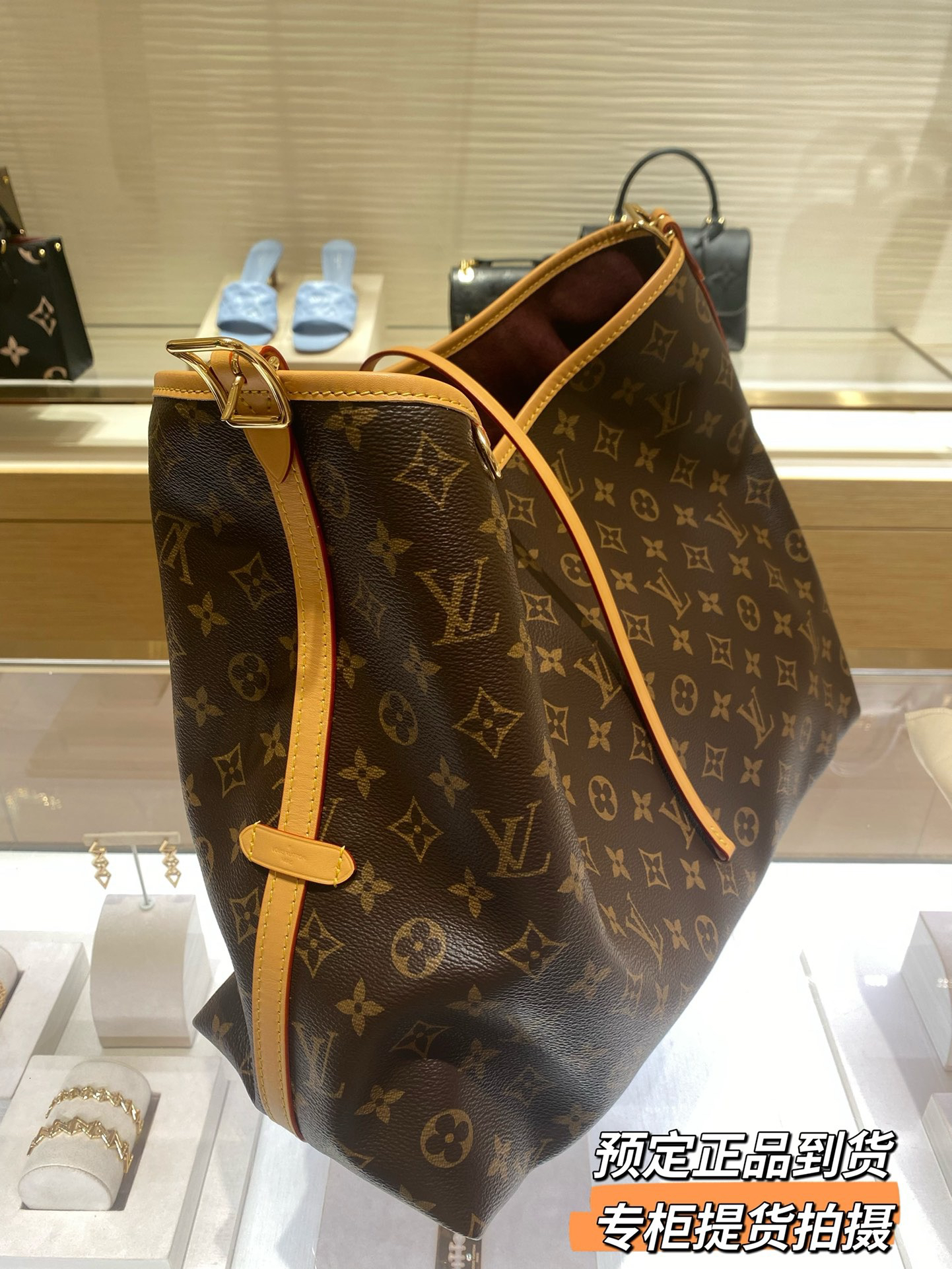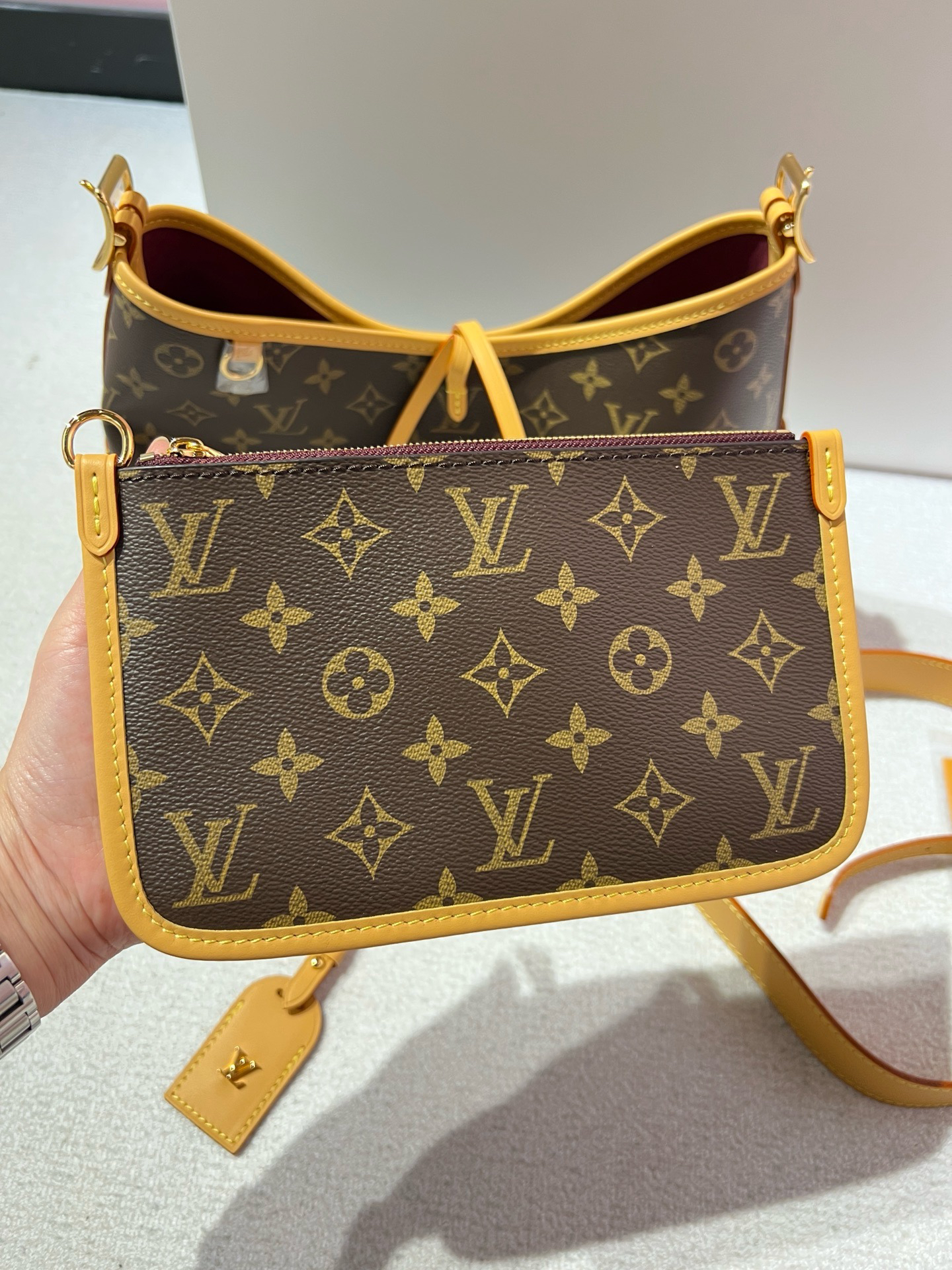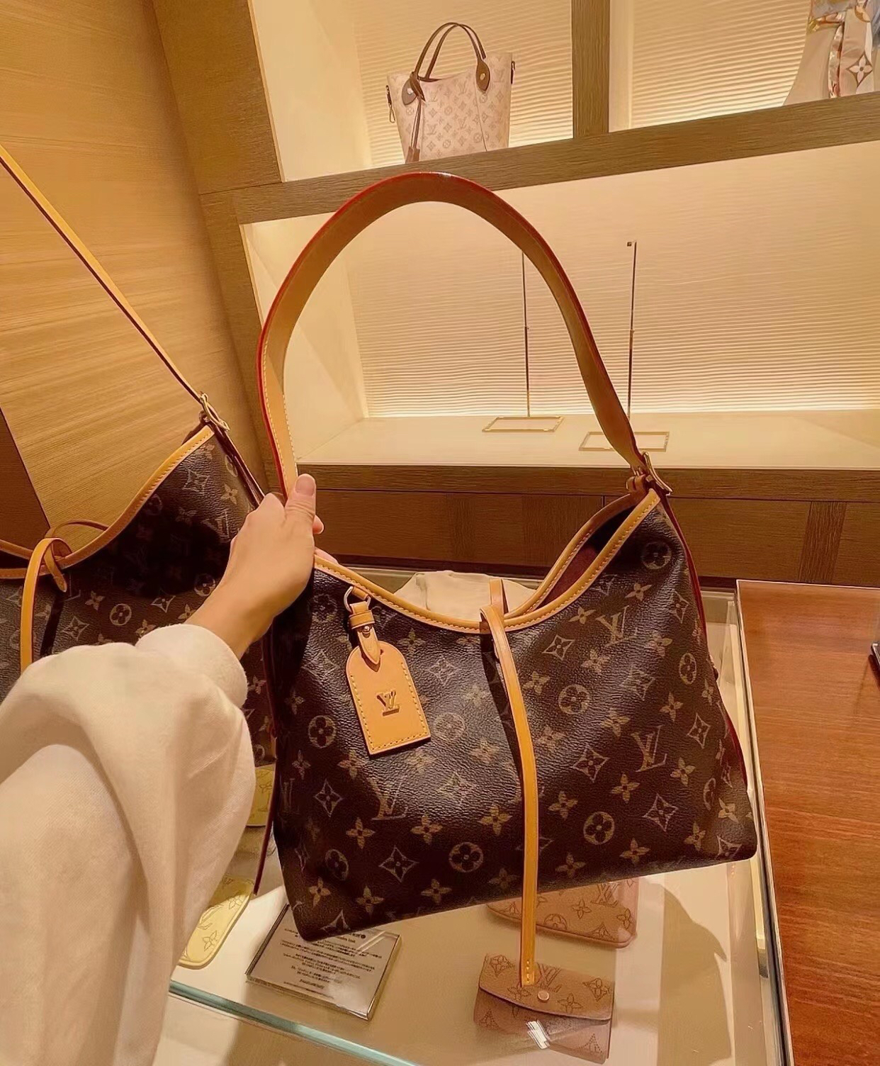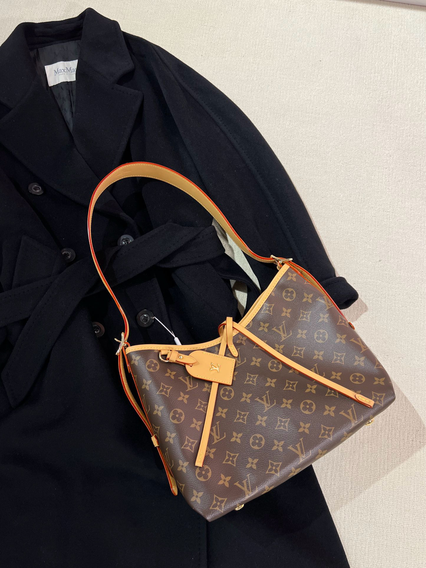 目前最火的购物袋系列 CARRYALL 手袋 也是tote包,整个包包非常随意又自然,一包N用,在网上目前搜索排行已经第一了!!可以说是接下来的大热门!因为它既可单独作为一只精致手拿包使用,亦可作为额外的口袋;最最主要的是上身好看,明快的内衬色调为 Monogram 经典帆布增加了更多活泼生动之感;轻便小巧,可拆卸调节手挽带。~