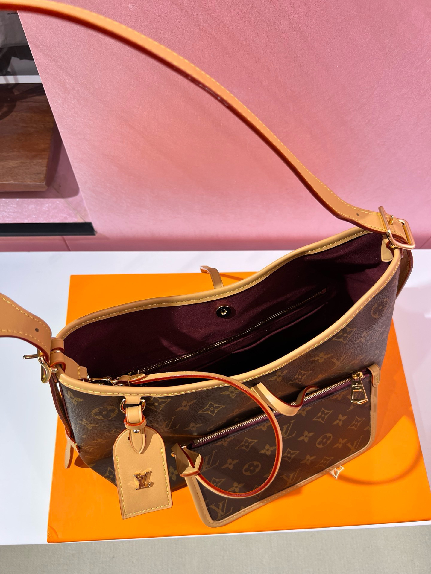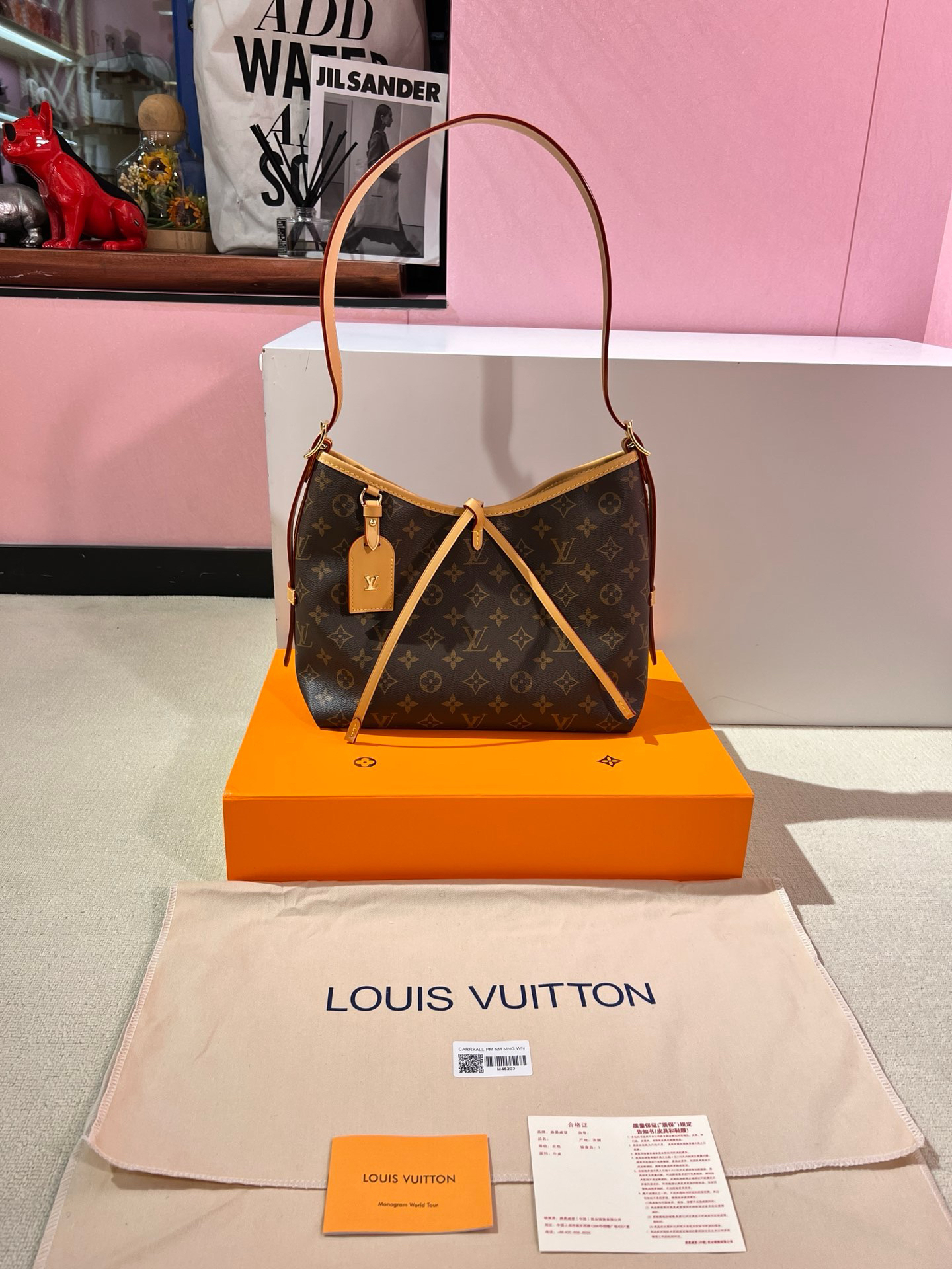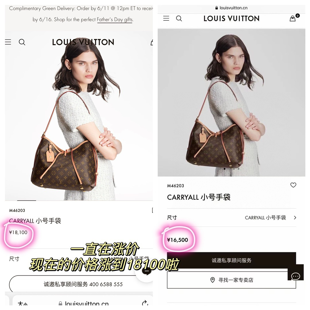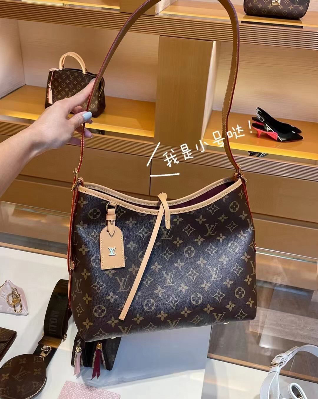 目前最火的购物袋系列 CARRYALL 手袋 也是tote包,整个包包非常随意又自然,一包N用,在网上目前搜索排行已经第一了!!可以说是接下来的大热门!因为它既可单独作为一只精致手拿包使用,亦可作为额外的口袋;最最主要的是上身好看,明快的内衬色调为 Monogram 经典帆布增加了更多活泼生动之感;轻便小巧,可拆卸调节手挽带。~