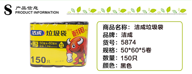 洁成厨房加厚大号垃圾袋50cm*60cm*30只*5卷150只 黑色家用清洁塑料袋 厨余垃圾分类