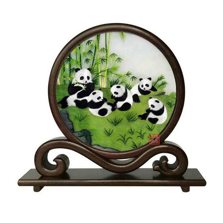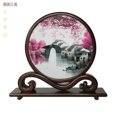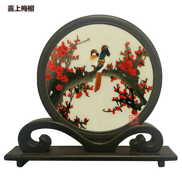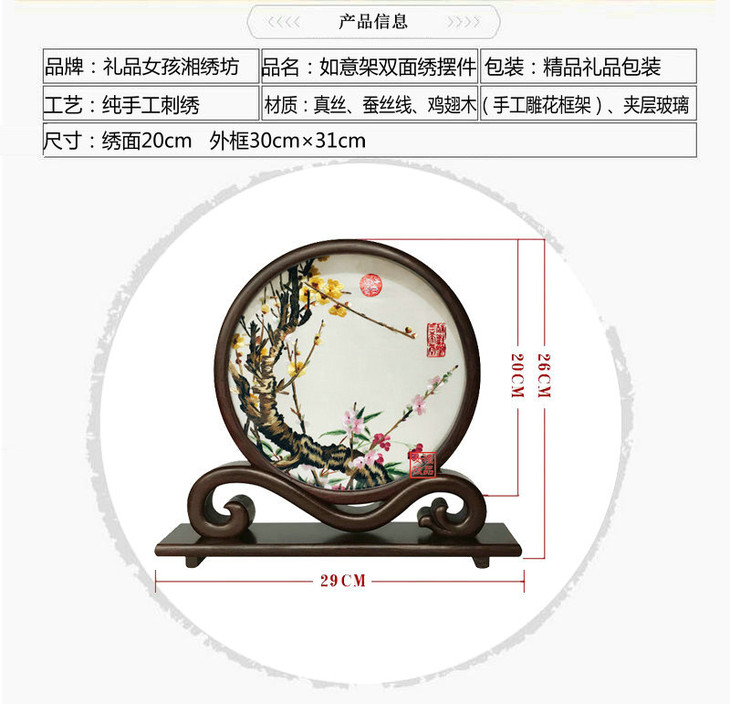 凯崎湘绣 纯手工刺绣 玉兰 梅竹双面绣 古典如意架客厅办公室摆件 精品出国 送领导 老外礼品