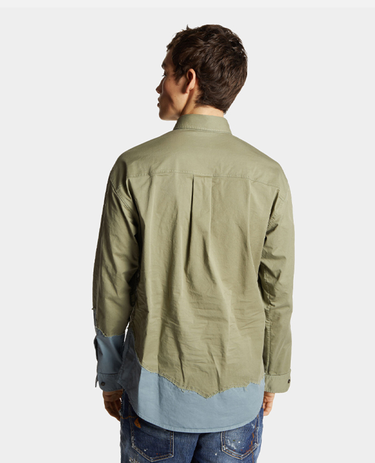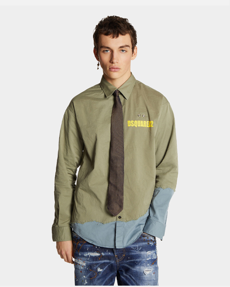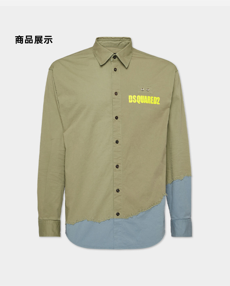 DSQUARED2 男士字母徽标印花弹力棉长袖衬衫 绿色 S74DM0842 S35175 709