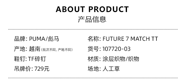 SFS彪马Puma FUTURE 7 中端TT碎钉低帮人草足球鞋男 107720-03