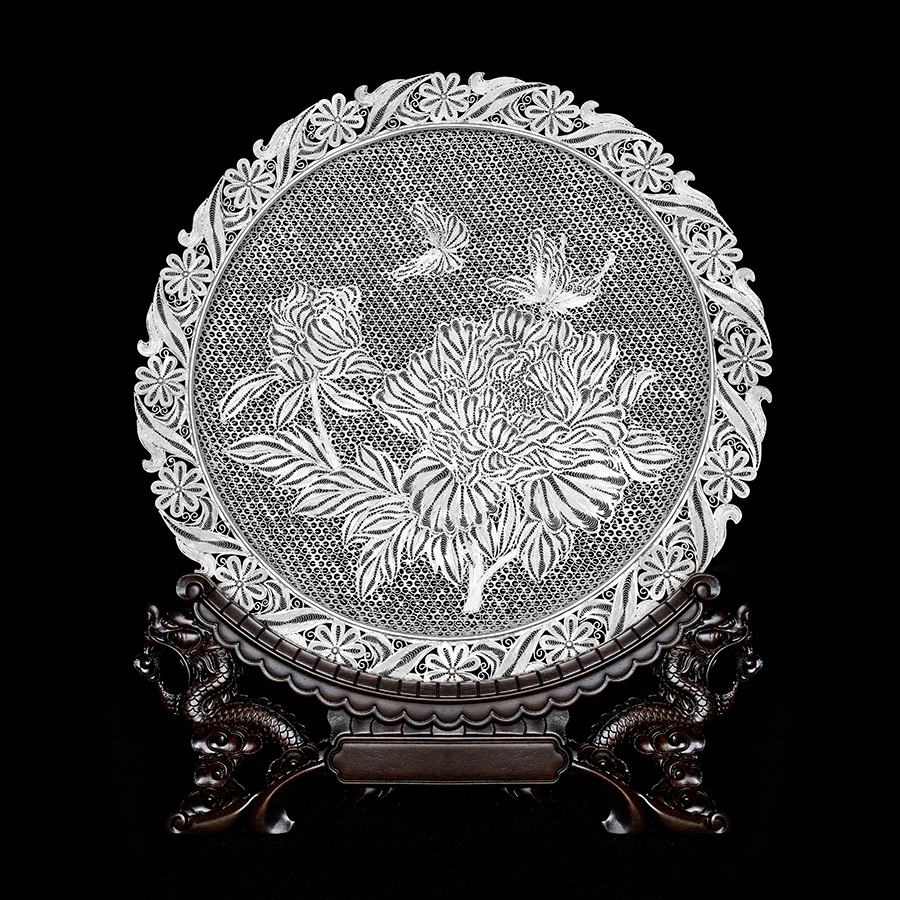 【作品名称】:《花蝶绮梦花丝盘》
