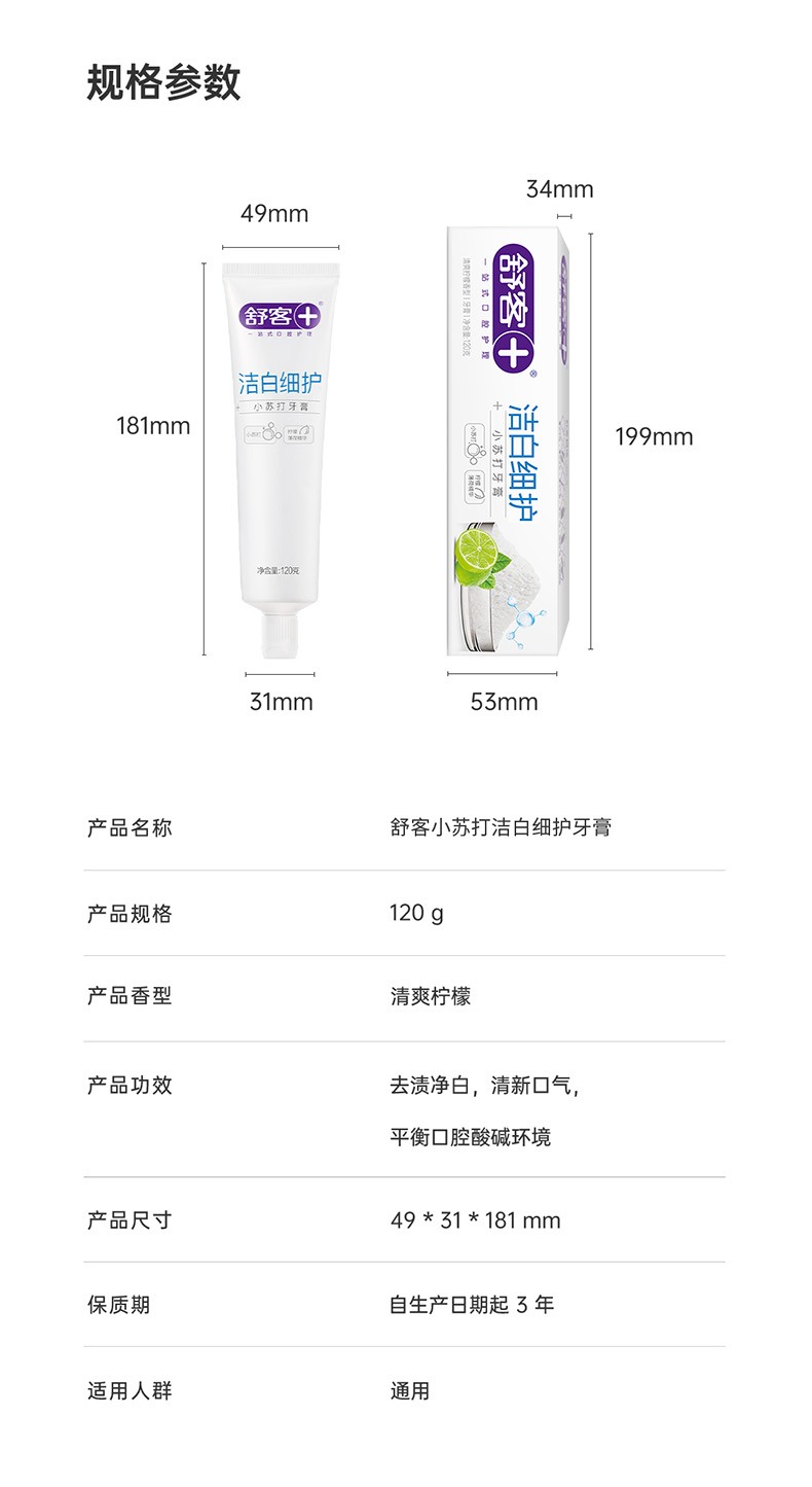 【内购专享】舒客小苏打牙膏(洁白细护)120克(内含多规格)
