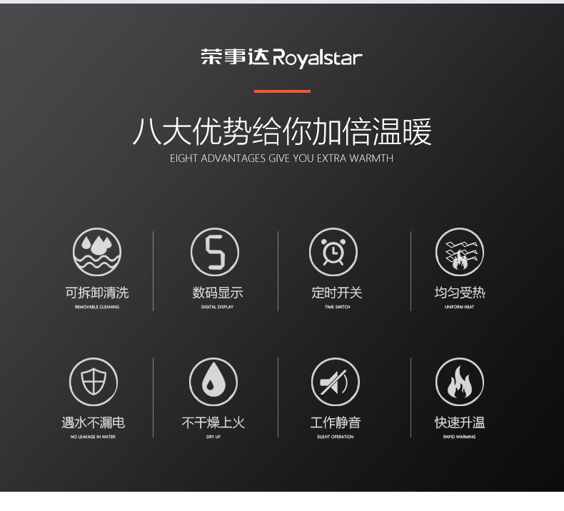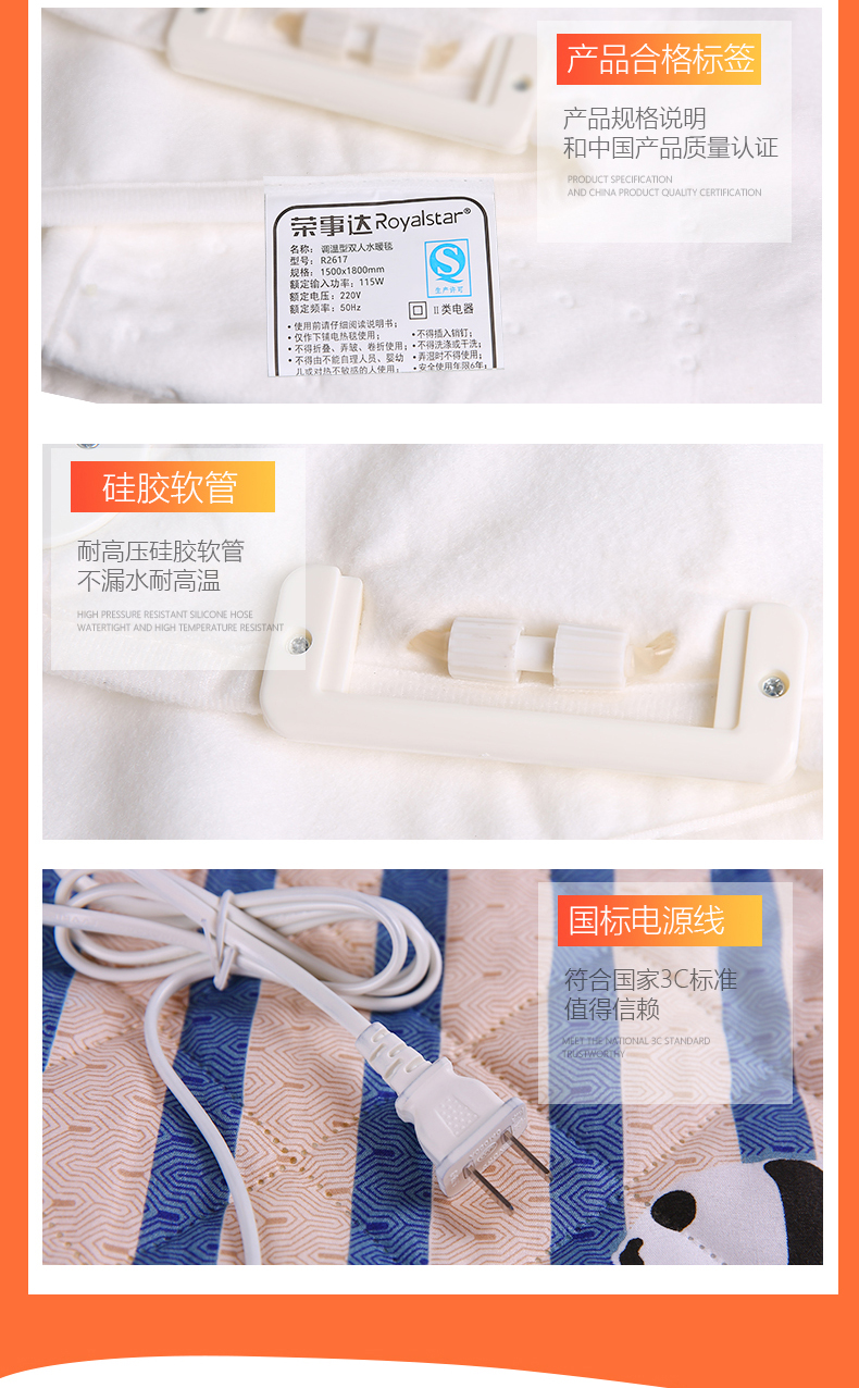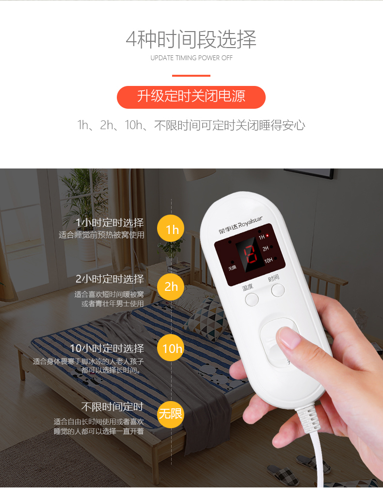 荣事达 电热毯 R2617 水暖毯双人款 180*150cm 可拆卸清洗 定时8档调温 48小时发货