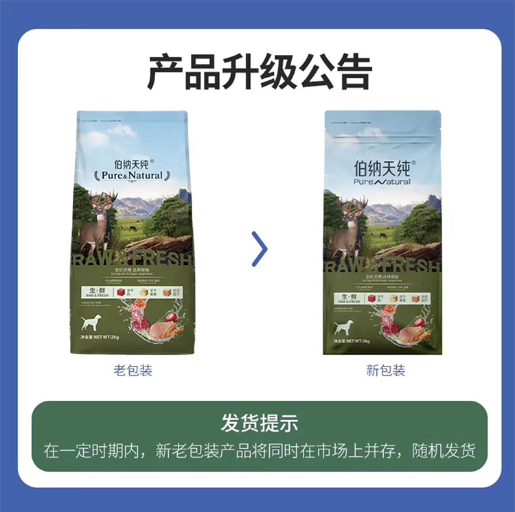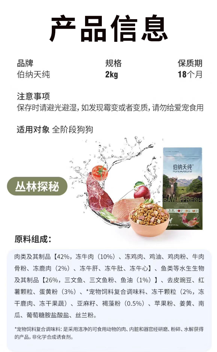 伯纳天纯狗粮2kg全价全犬期通用成犬幼犬无谷冻干粮通用狗粮