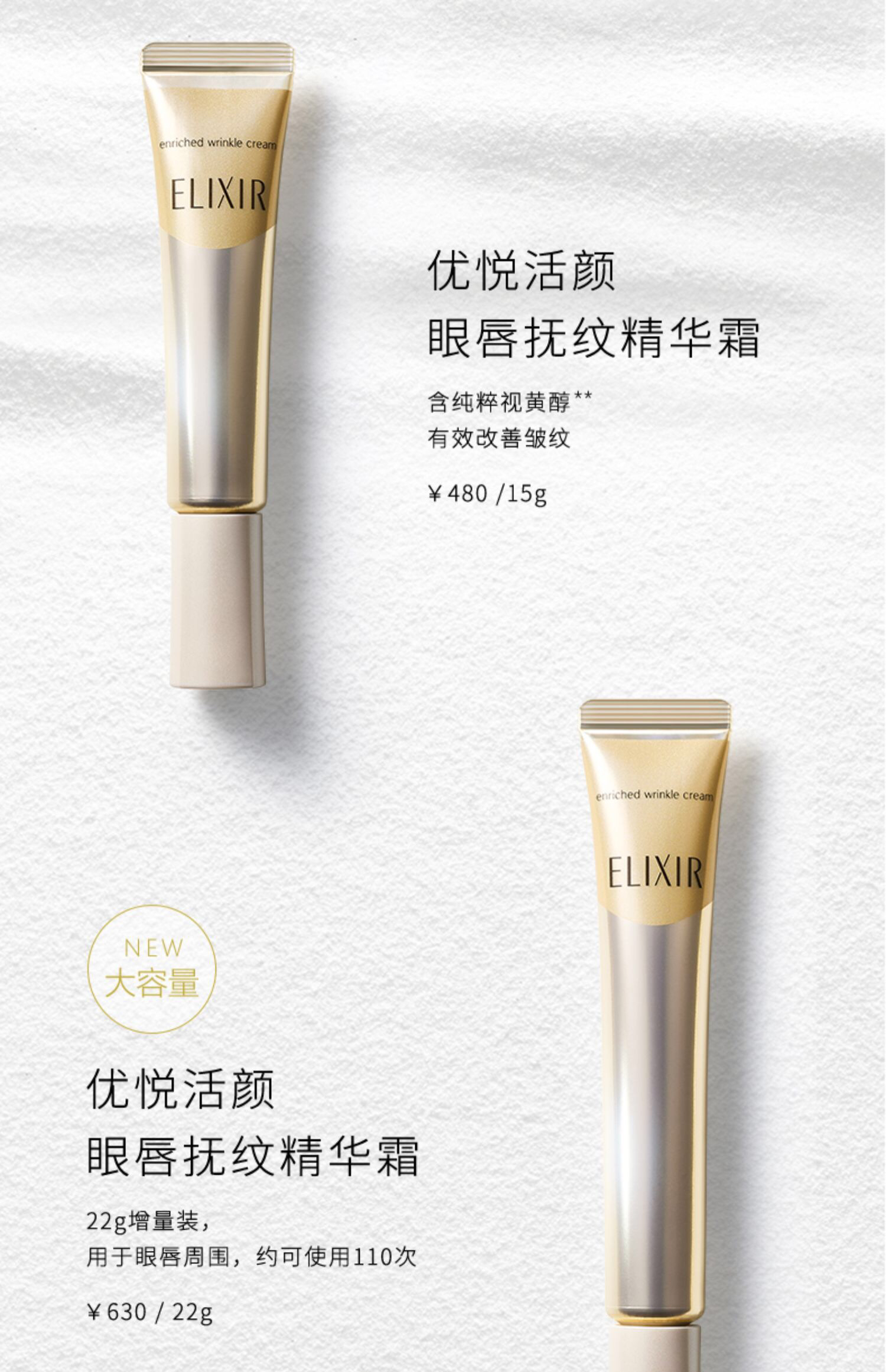 Elixir怡丽丝尔眼霜-淡化皱纹眼唇霜弹润保湿紧致-15g-22g-会员6折
