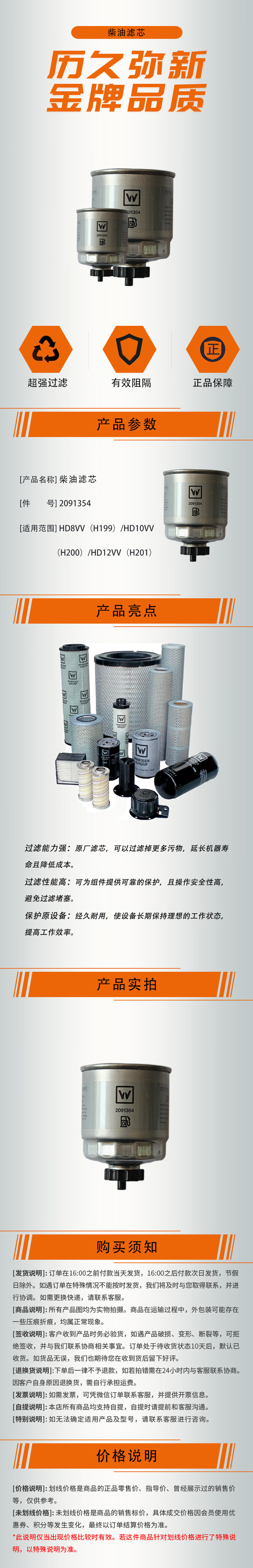 【柴油滤芯】 适用于HD8VV(H199)/HD10VV(H200)/HD12V2091354V(H201)