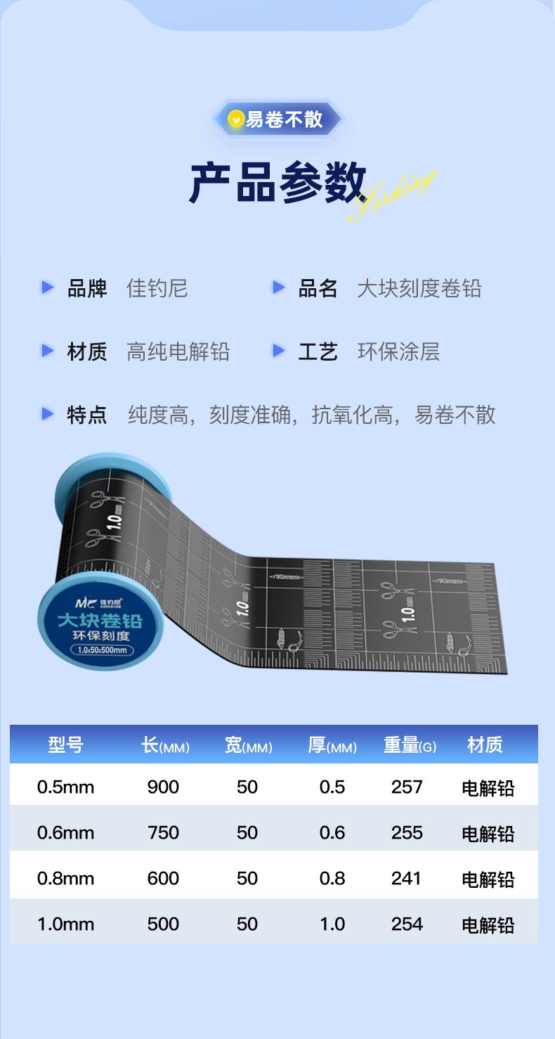佳钓尼大卷刻度铅大块防炸铅皮卷可剪铅坠微调铅钓鱼铅皮渔具用品