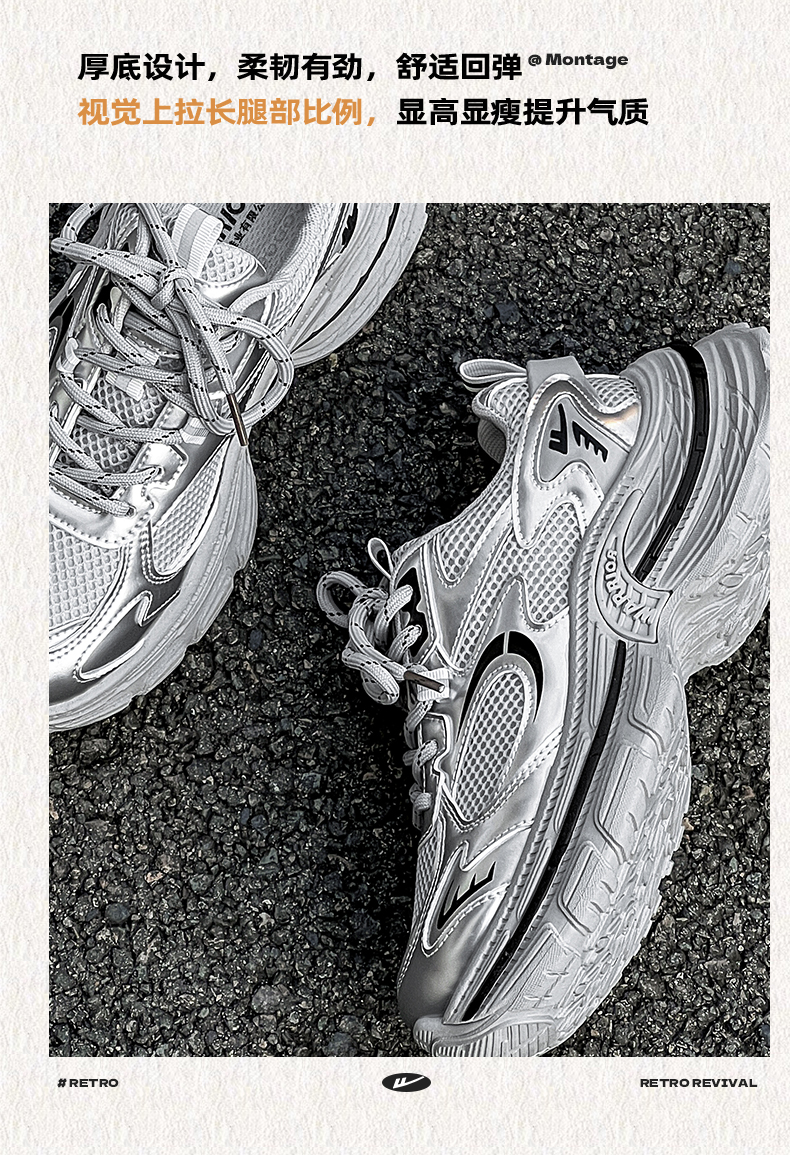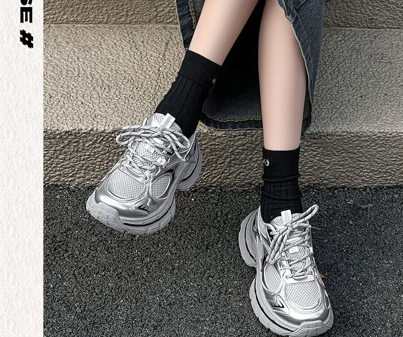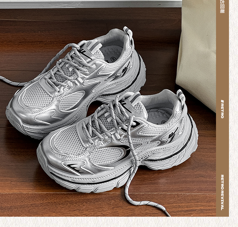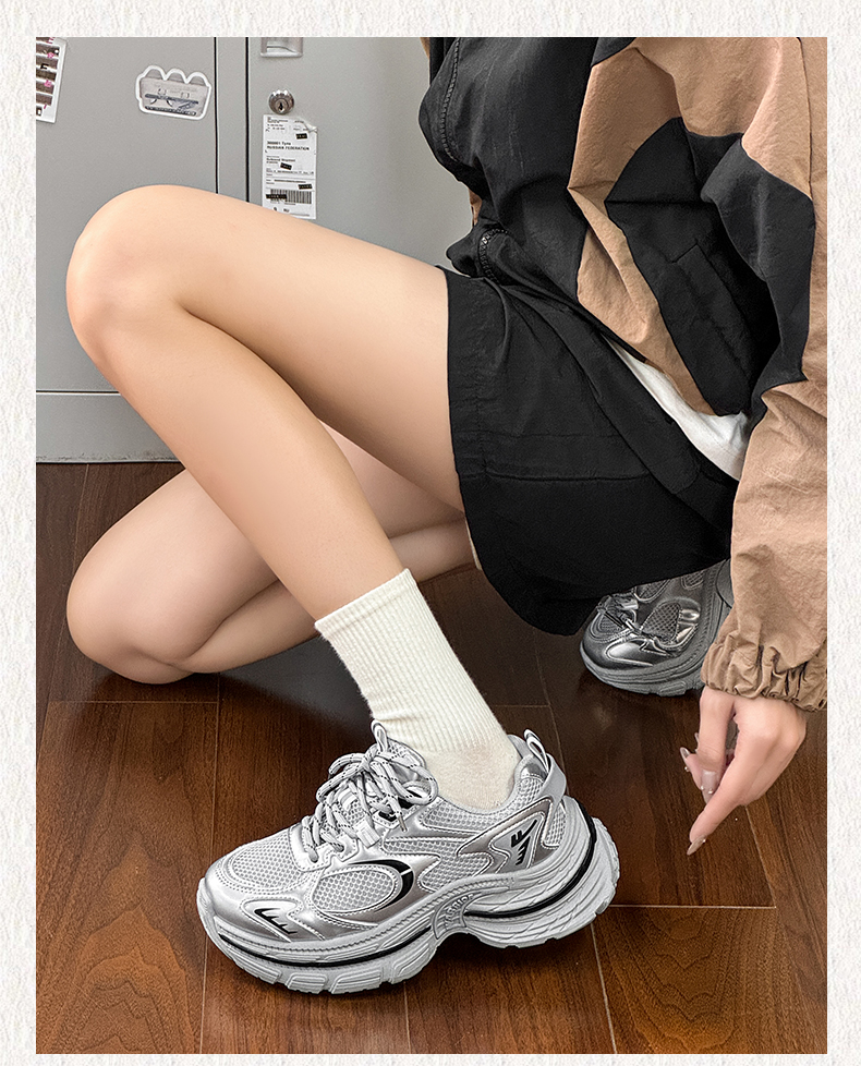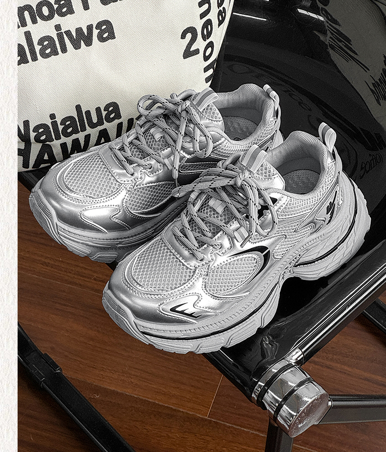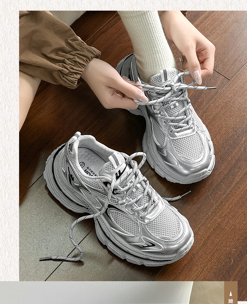 回力厚底老爹鞋女款2026春新款增高轻便银色网面百搭休闲运动鞋子WXY(S)-4625L
