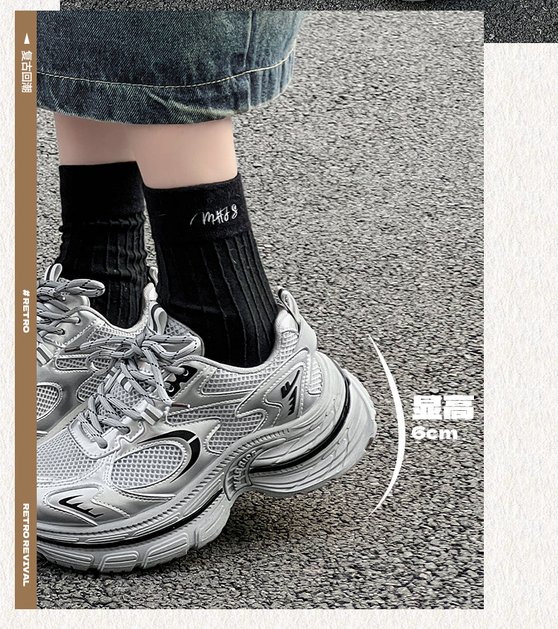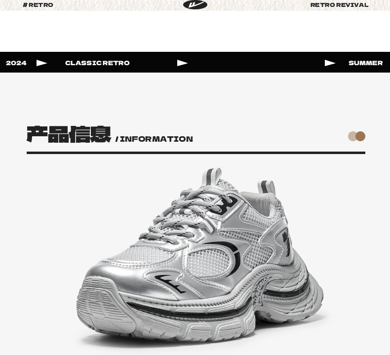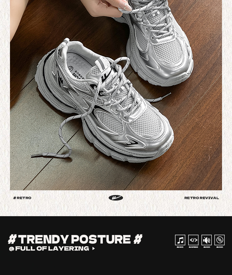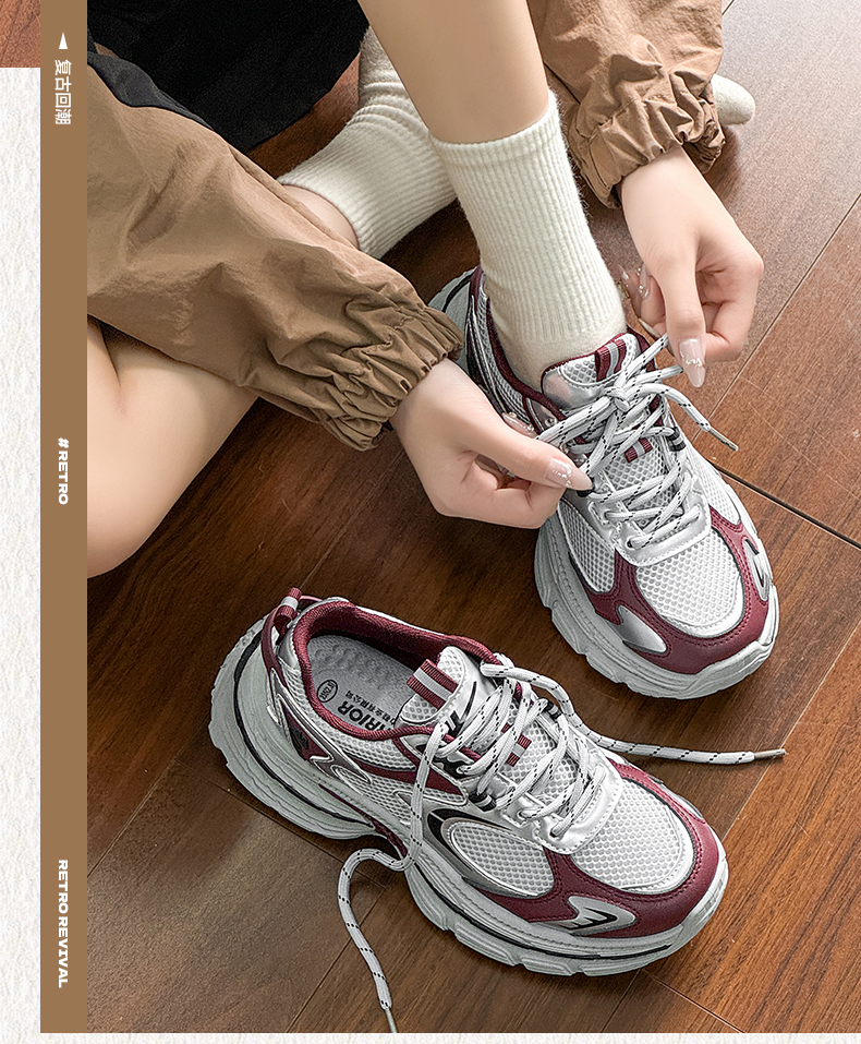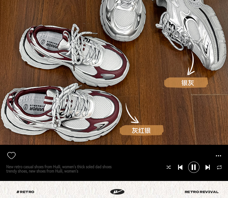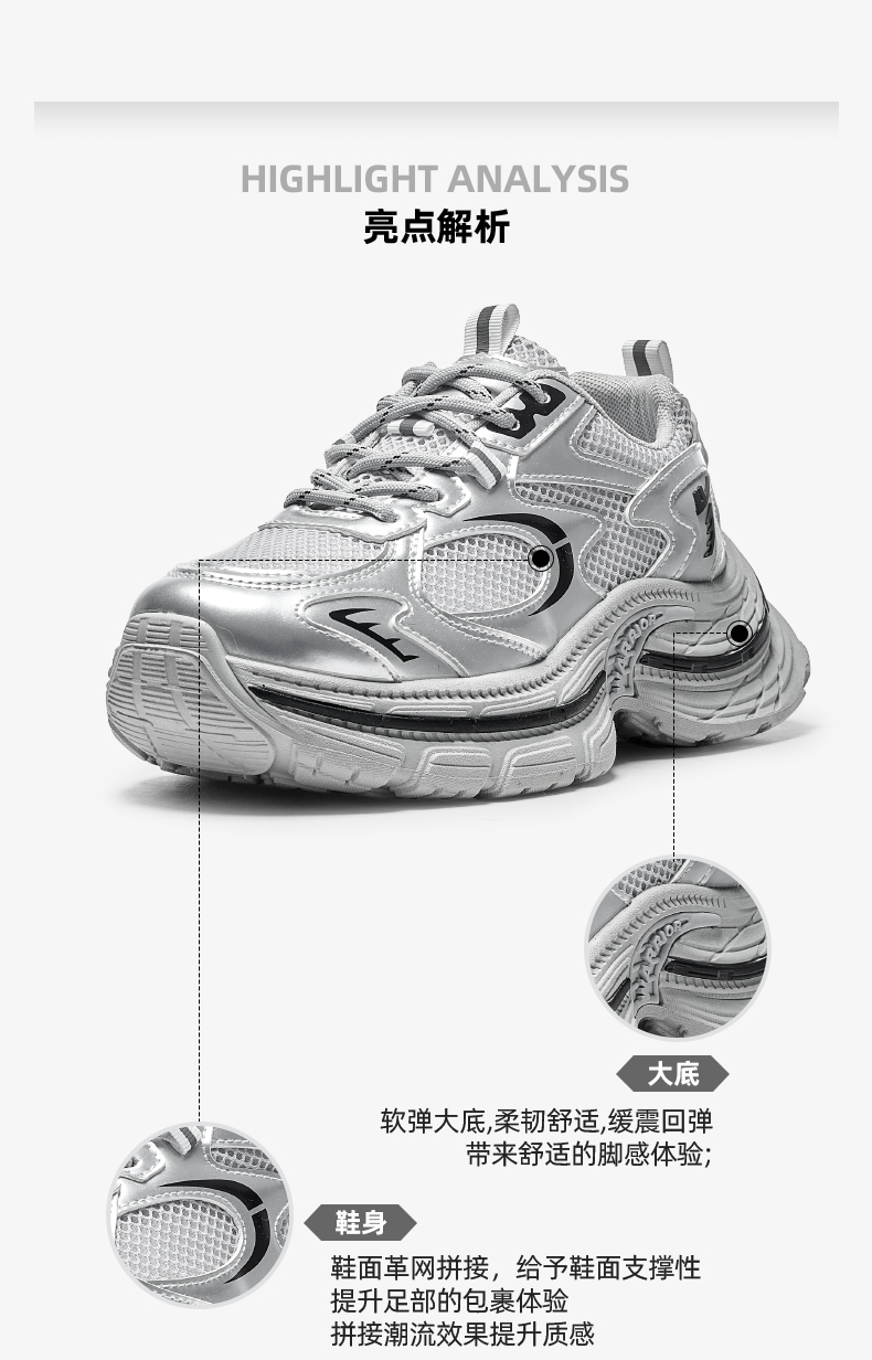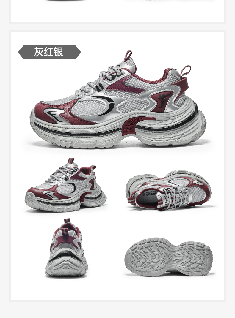 回力厚底老爹鞋女款2026春新款增高轻便银色网面百搭休闲运动鞋子WXY(S)-4625L