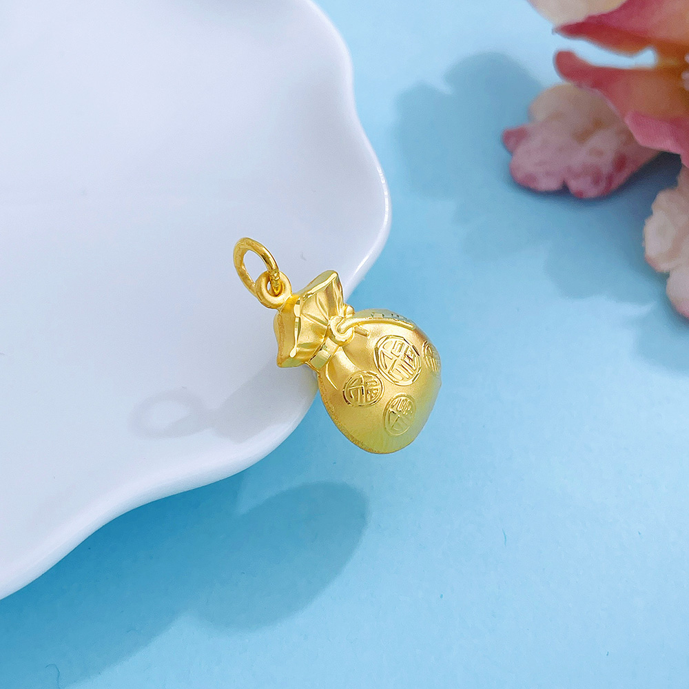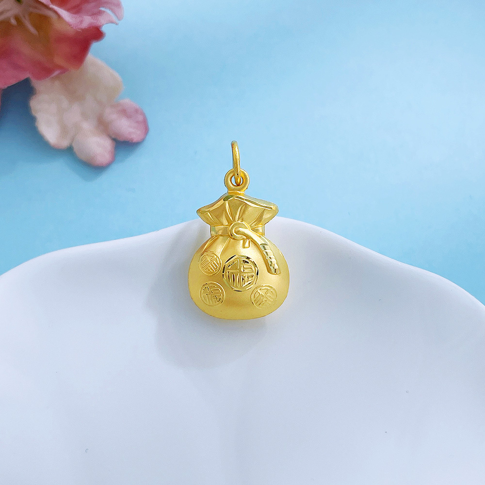 【限时克减150元】足金999.9 #招财纳福 空心福字铜钱图案福袋吊坠(AUWDZ00105)(预售产品下单后不退款不退货不换货不补差价