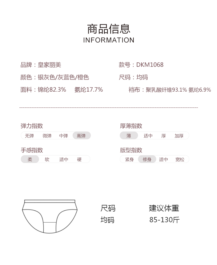 皇家丽美纯色裤子包臀无痕内裤中腰低角裤底裤女DK20429