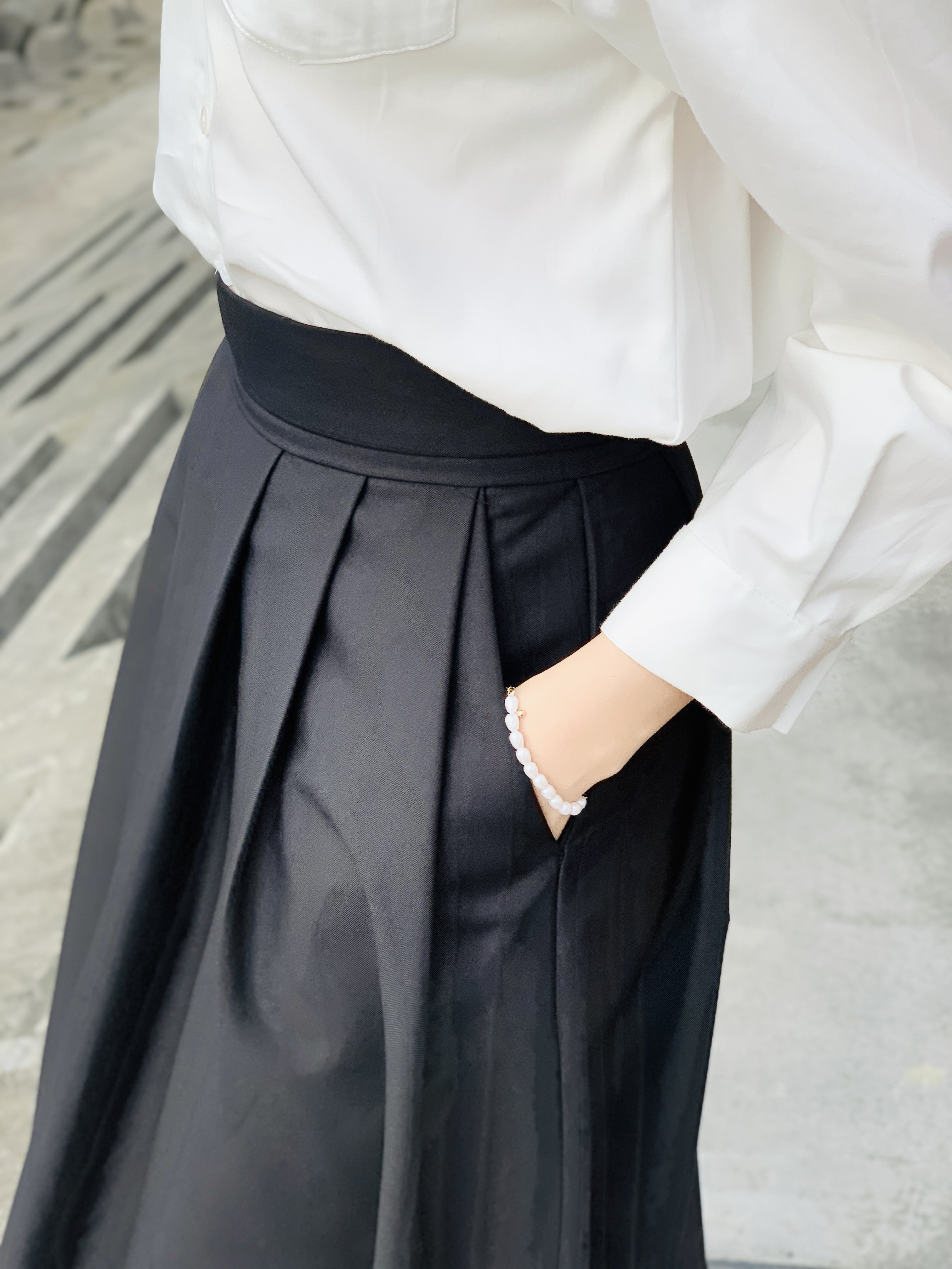 规则的5片工字褶让半裙的线条更立体