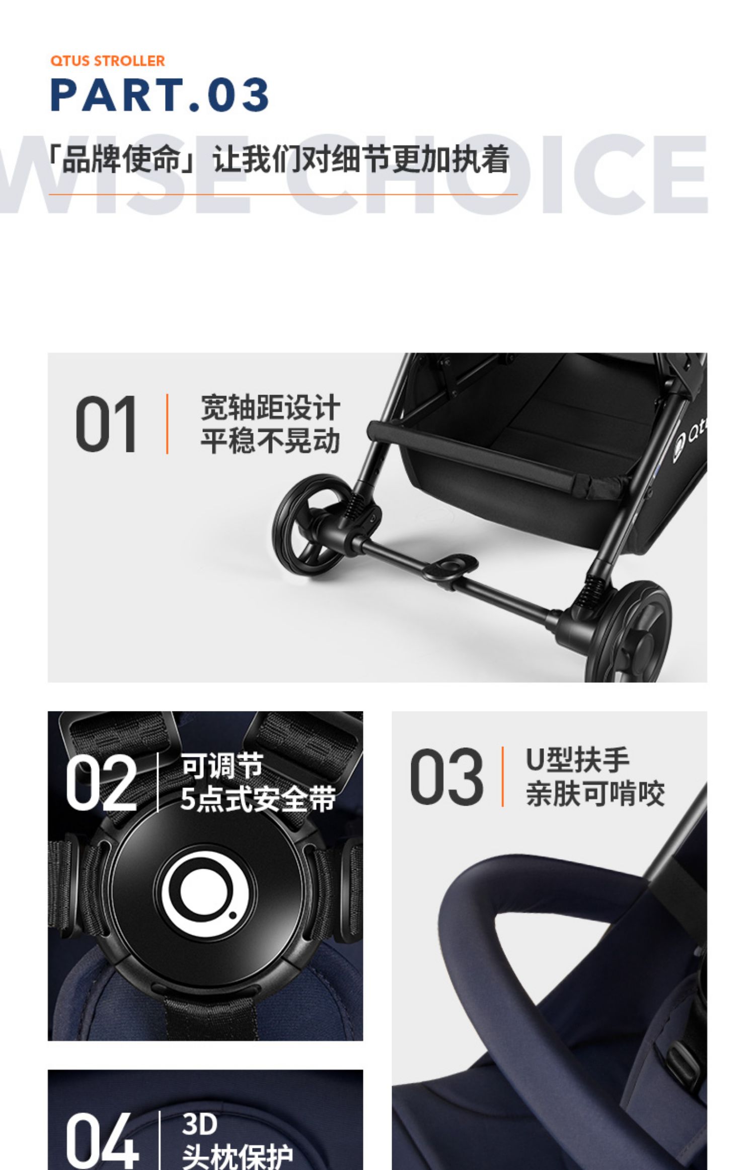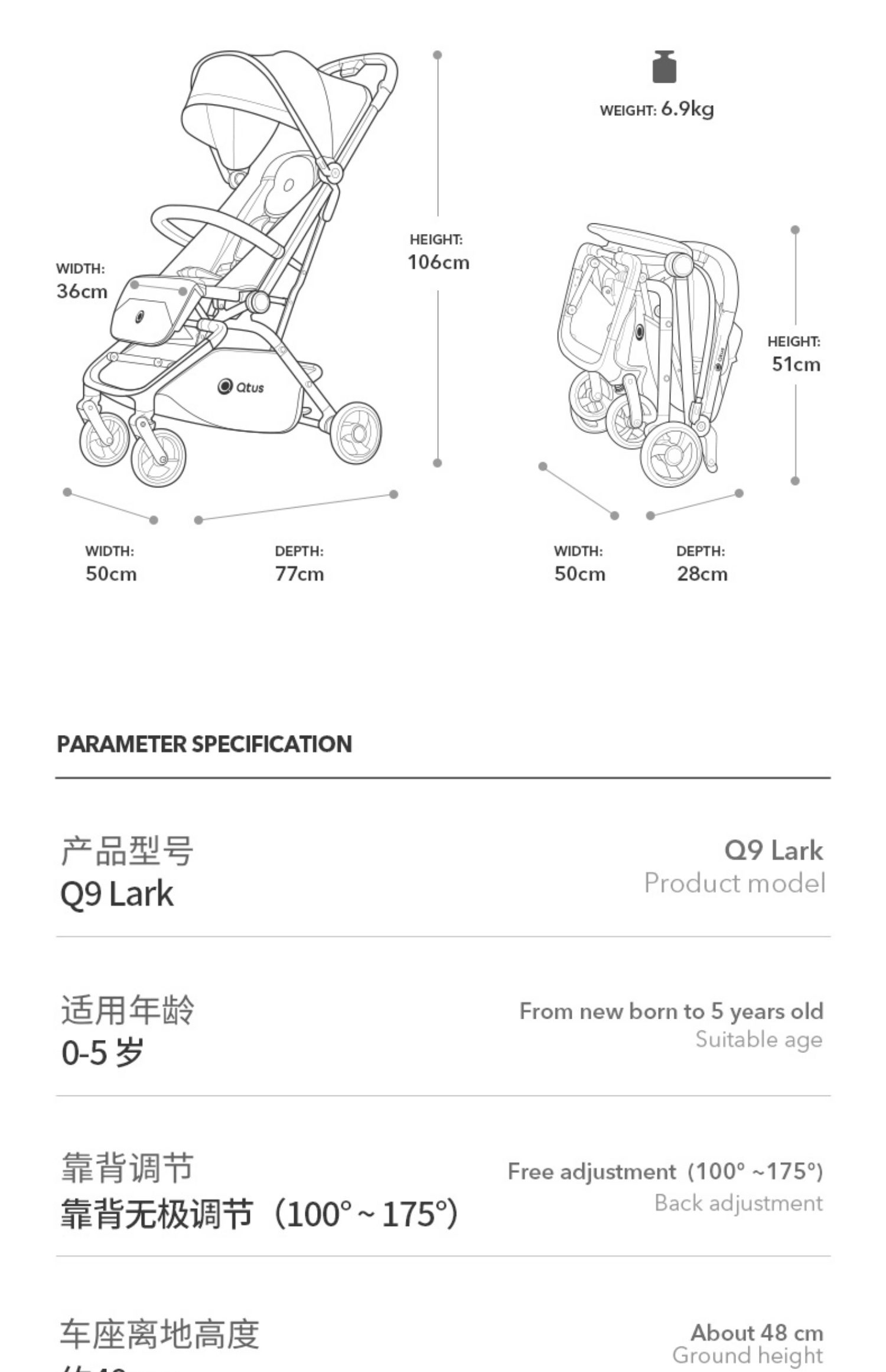 Qtus昆塔斯Q9Lark轻便型可登机婴幼儿推车(出生至36个月使用)