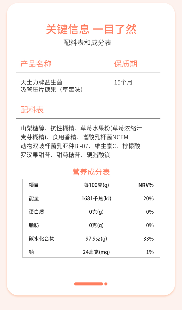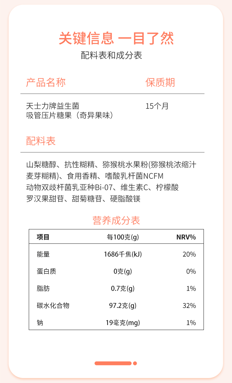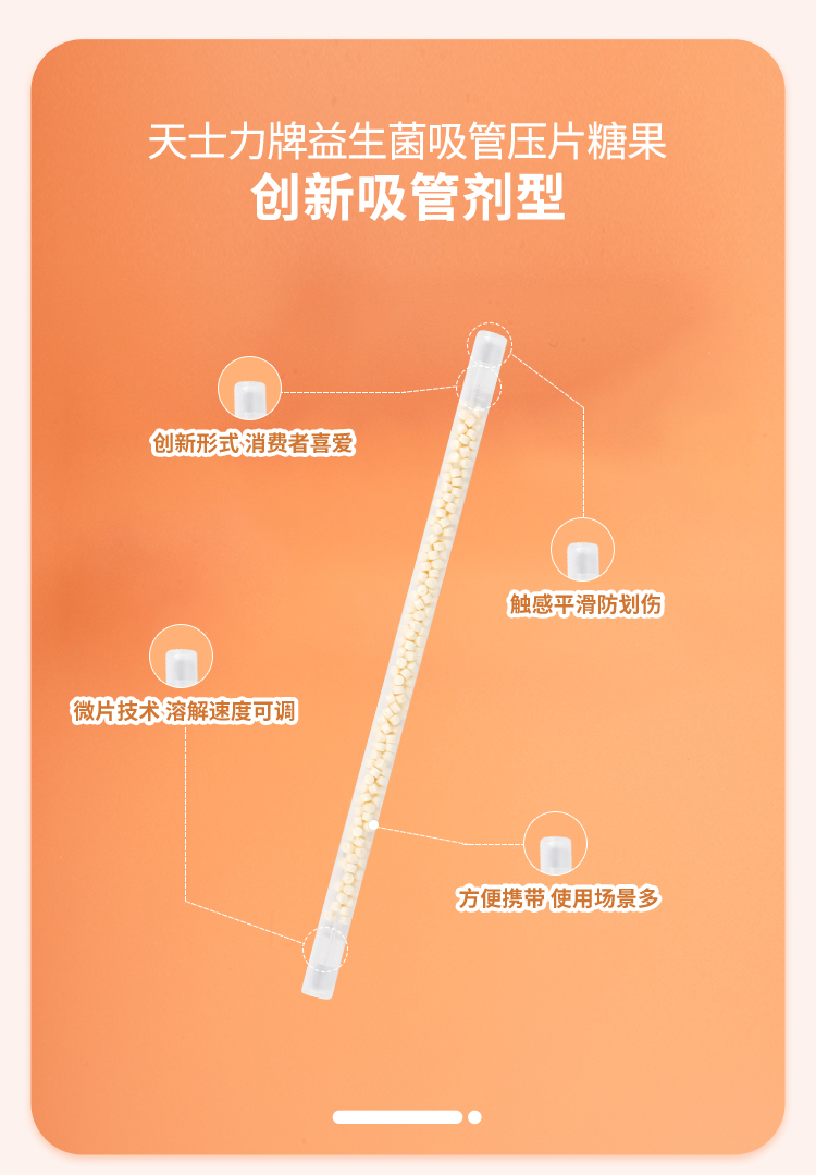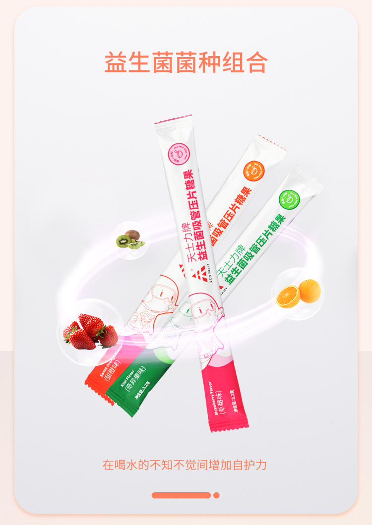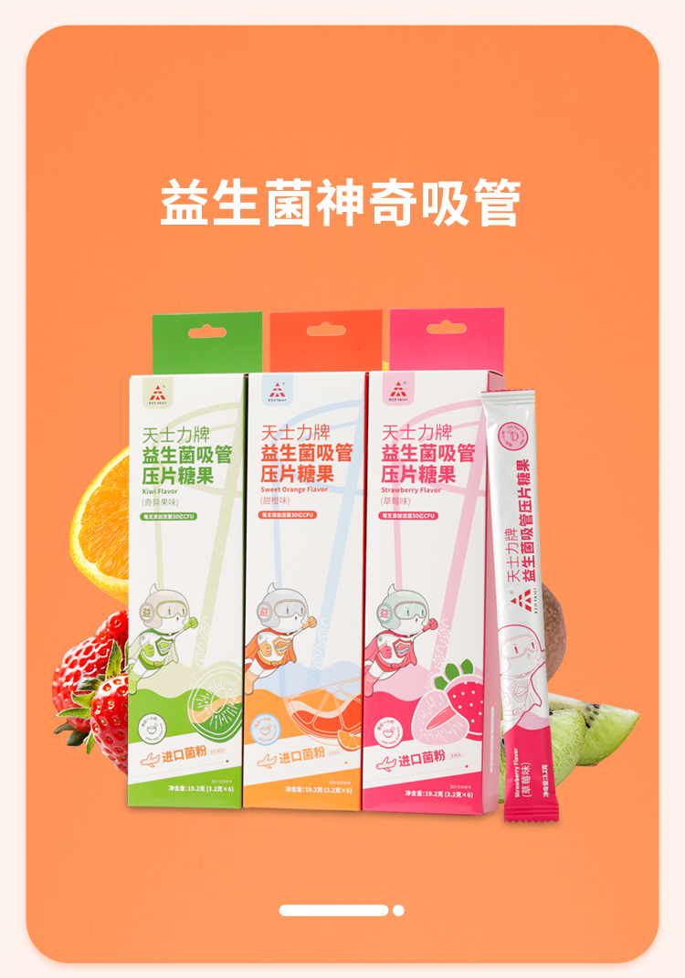 天士力牌 益生菌吸管压片糖果 1盒6支 三种口味 甜橙/草莓/奇异果