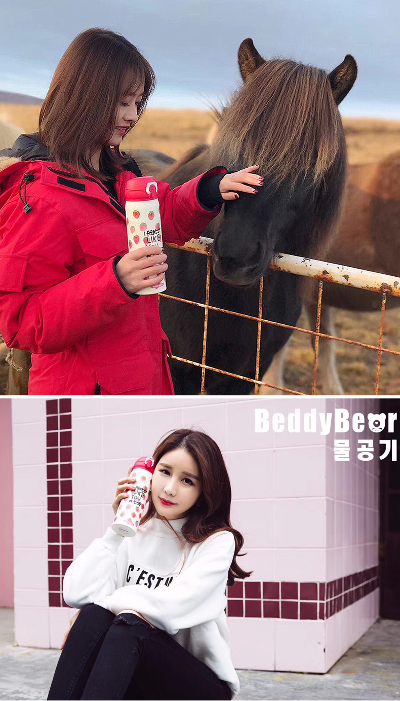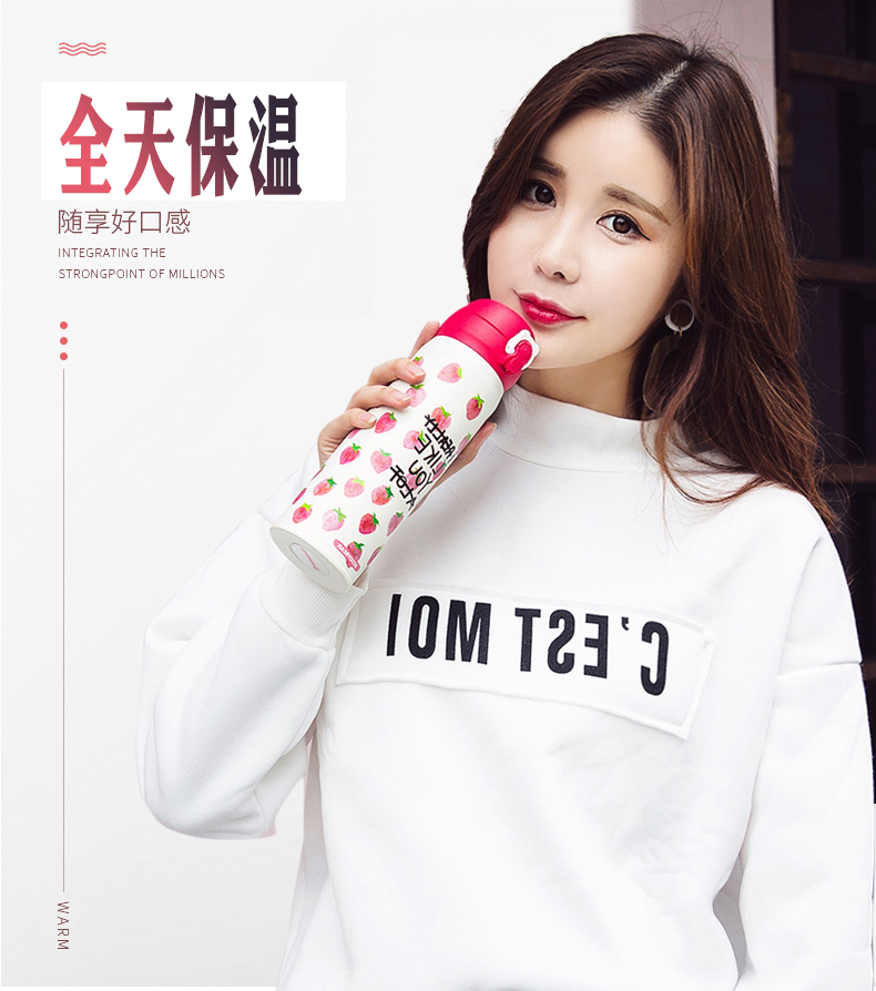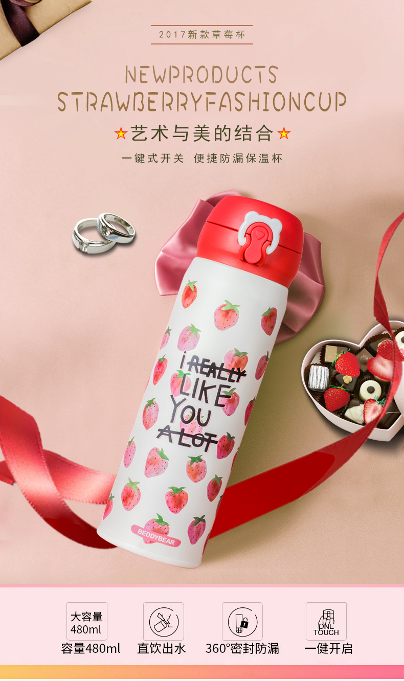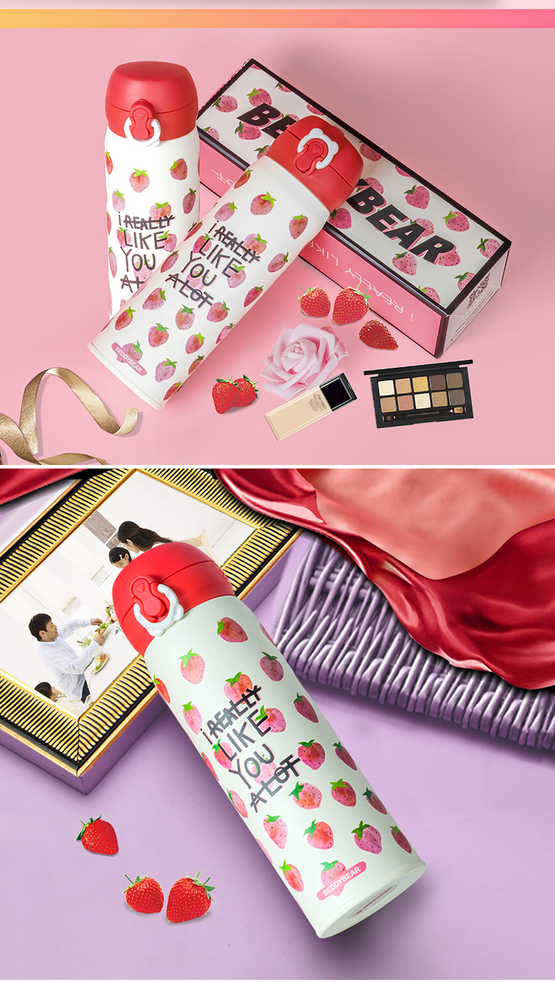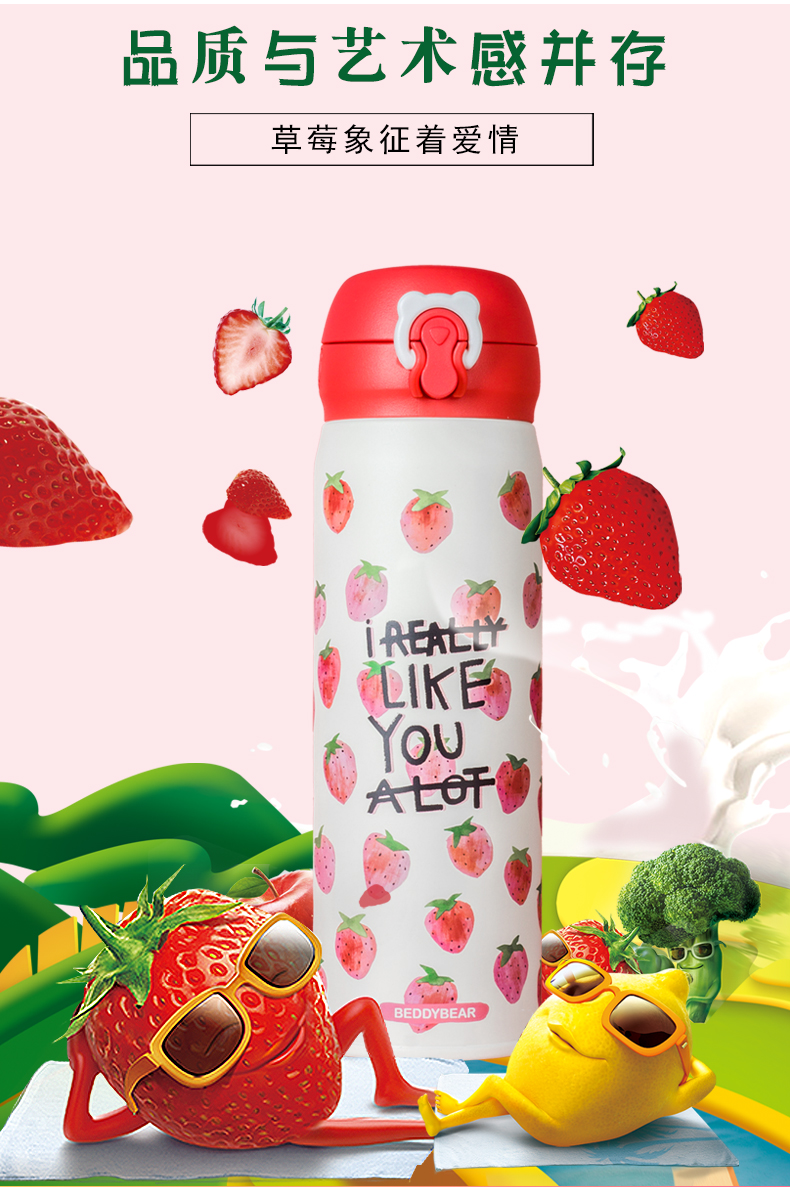 韩国杯具熊新款草莓保温杯男女学生不锈钢便携创意可爱水杯子
