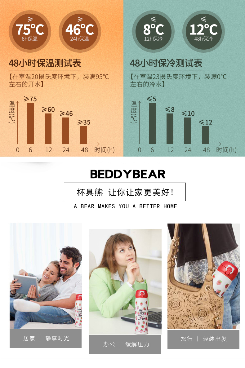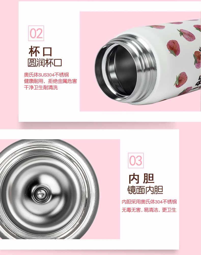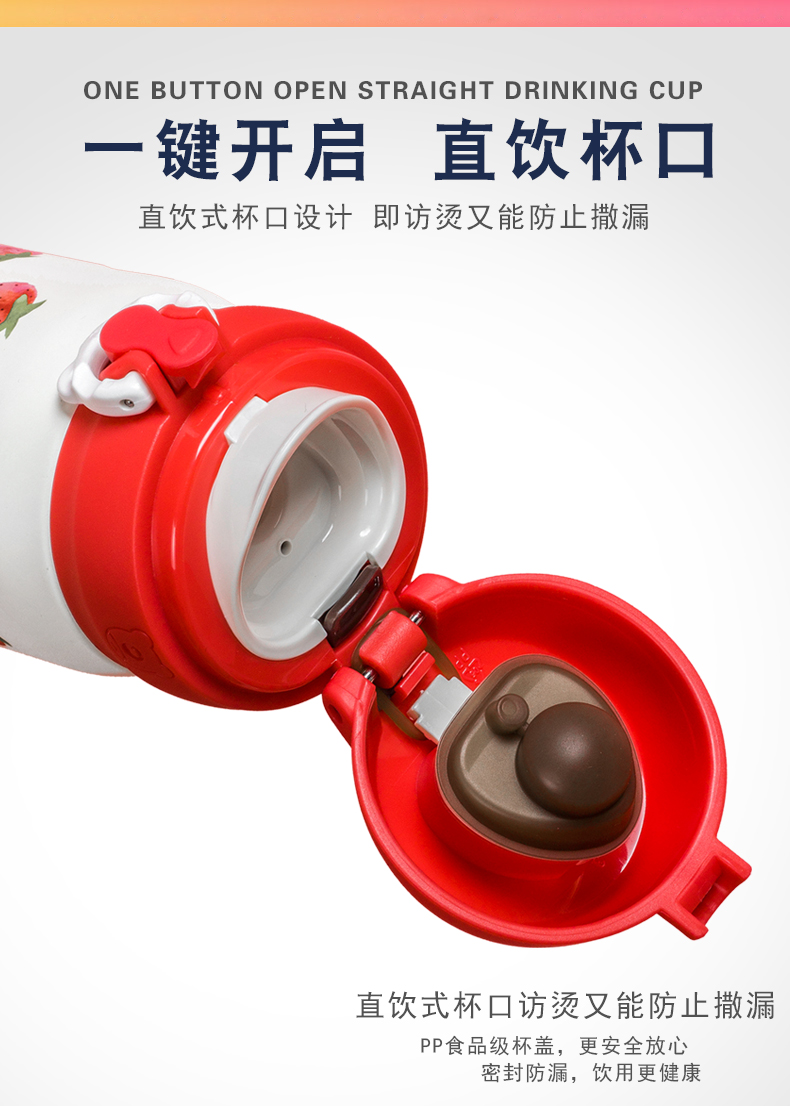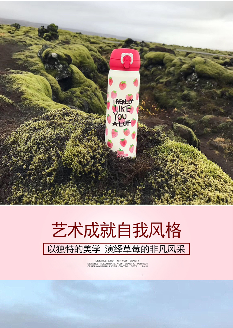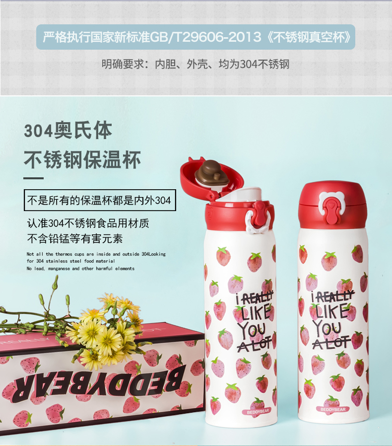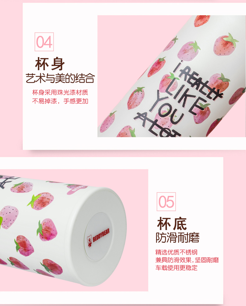 韩国杯具熊新款草莓保温杯男女学生不锈钢便携创意可爱水杯子