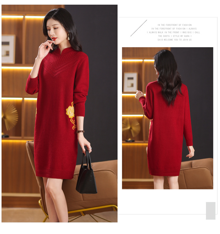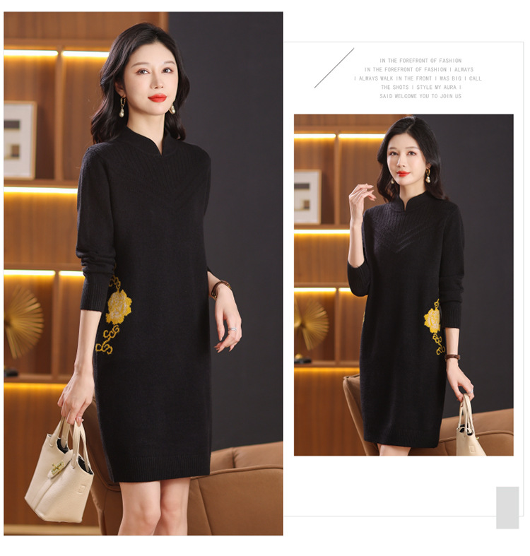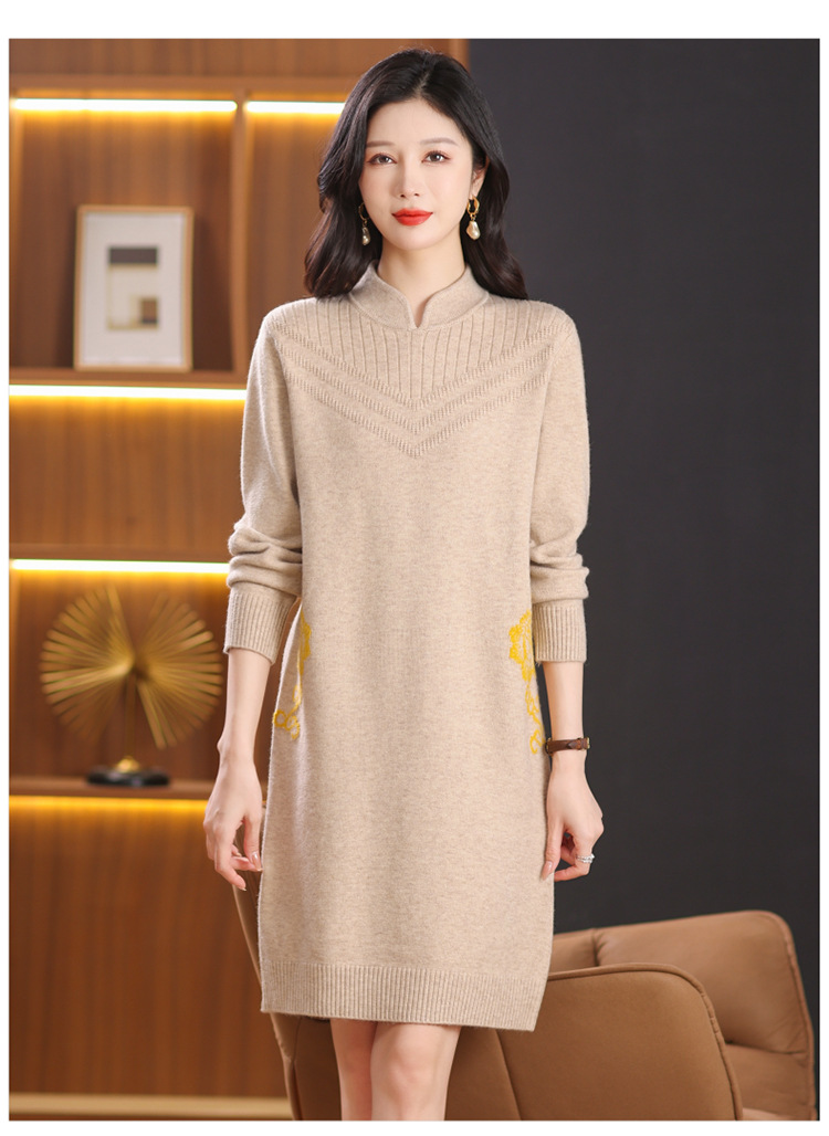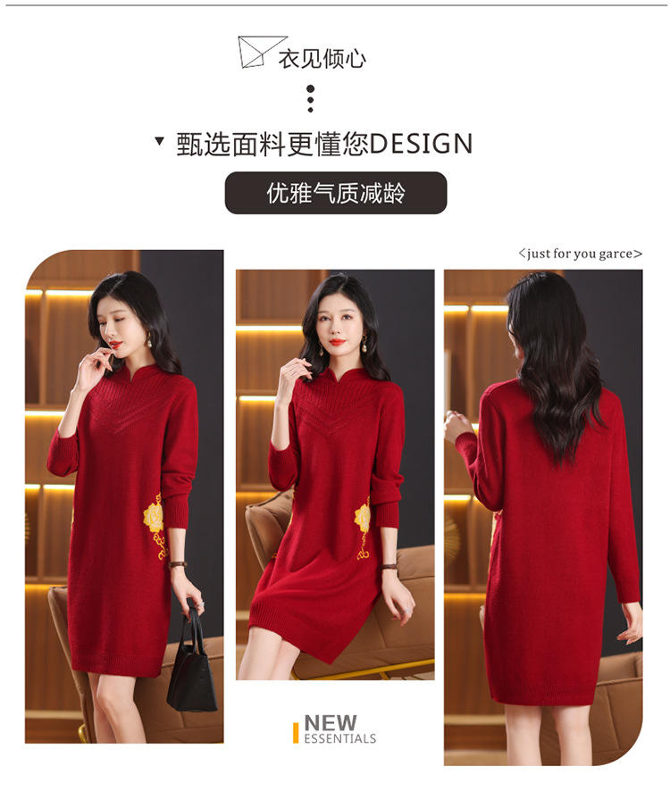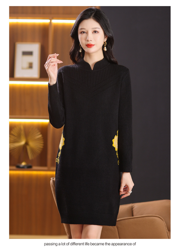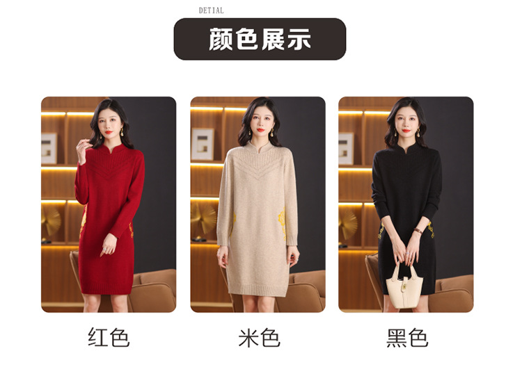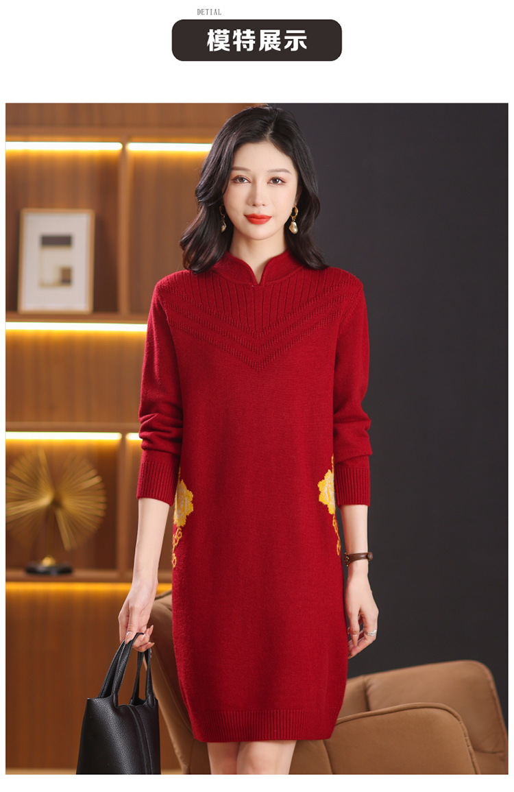 中式国风妈妈装针织打底衫毛衣,中长款立领羊毛保暖裙CC-101-68229