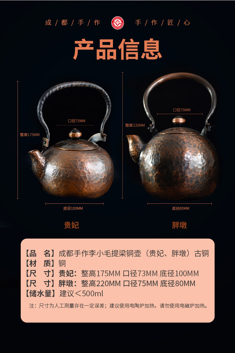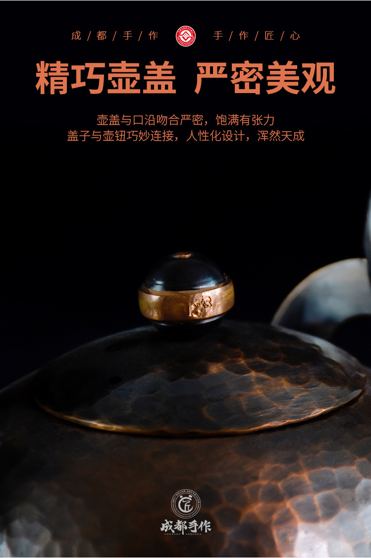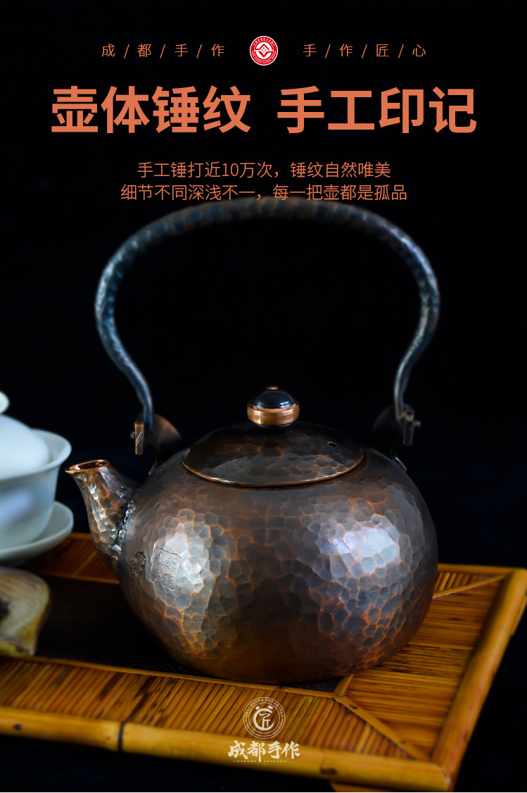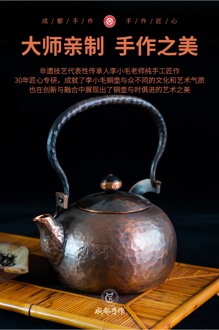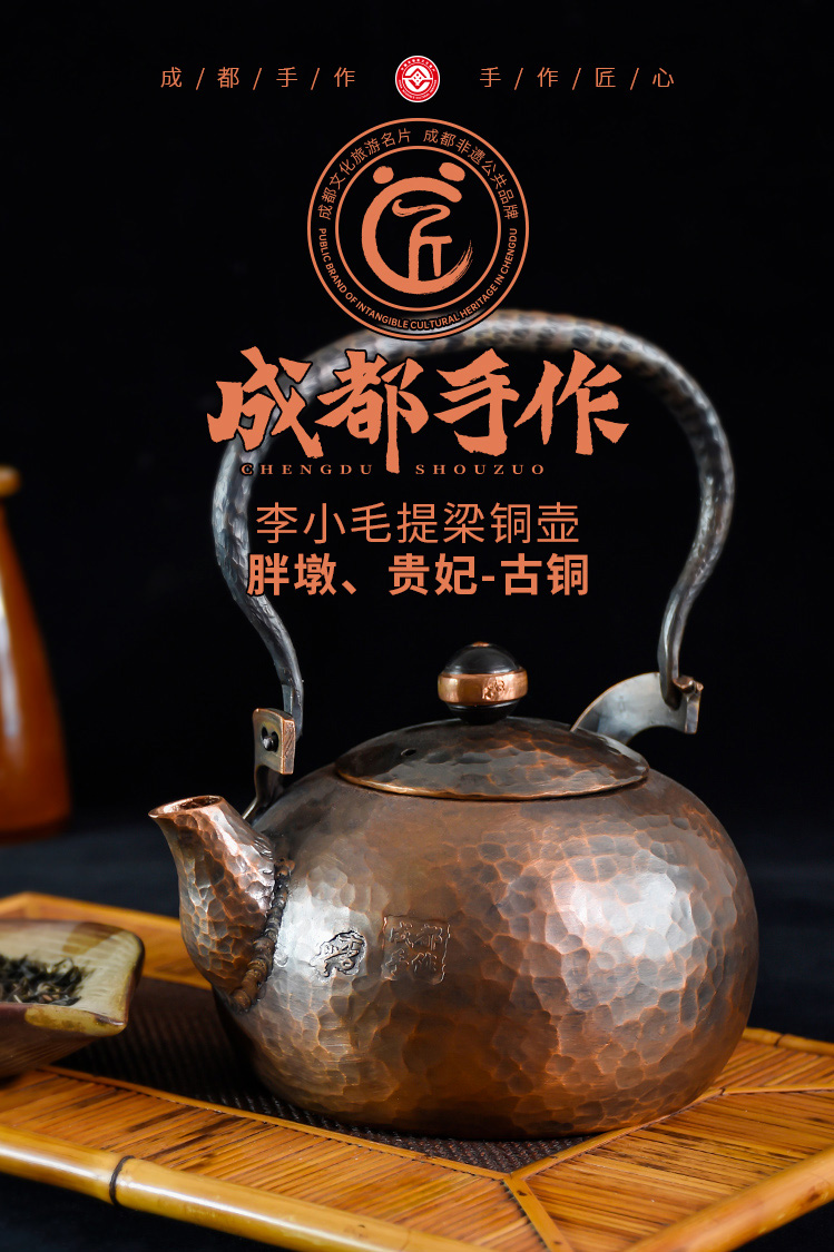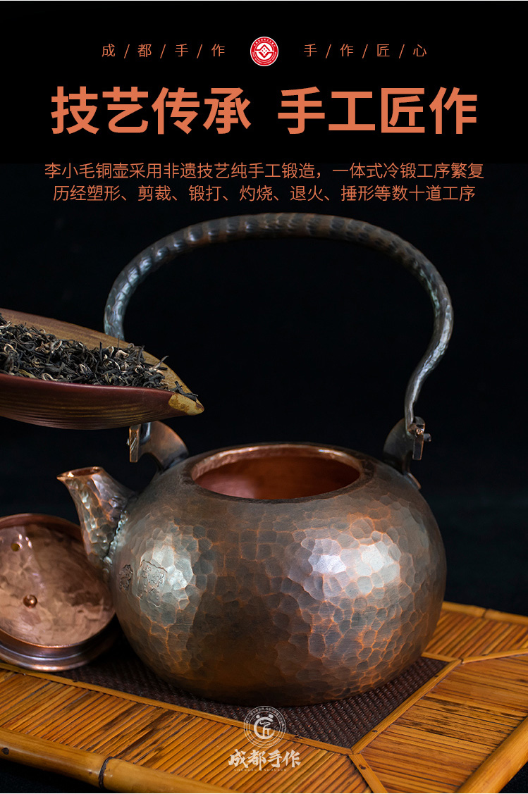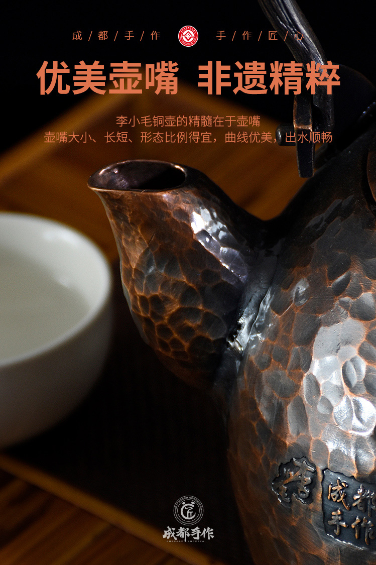 成都手作【李小毛铜壶】提梁铜壶 复古功夫茶壶 非遗一体铜壶手工壶