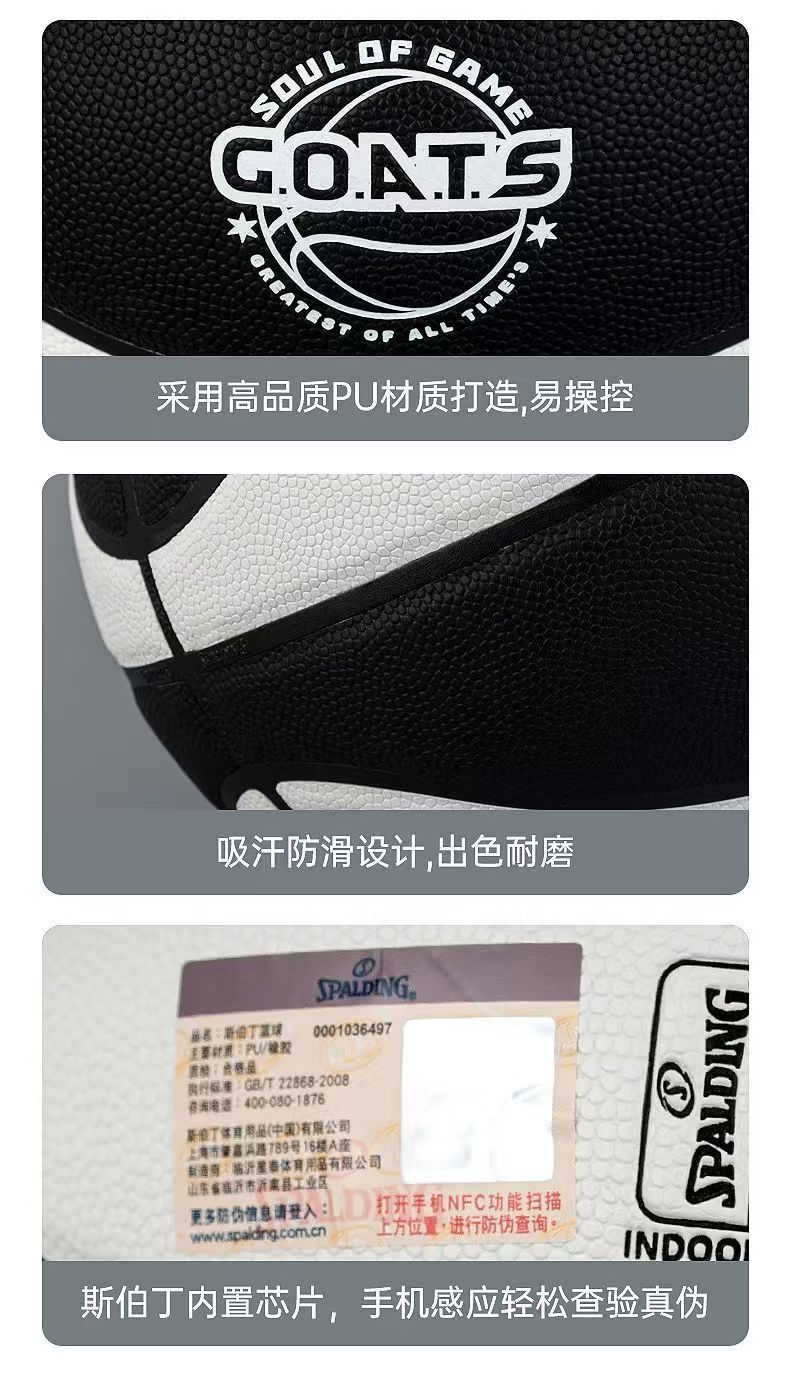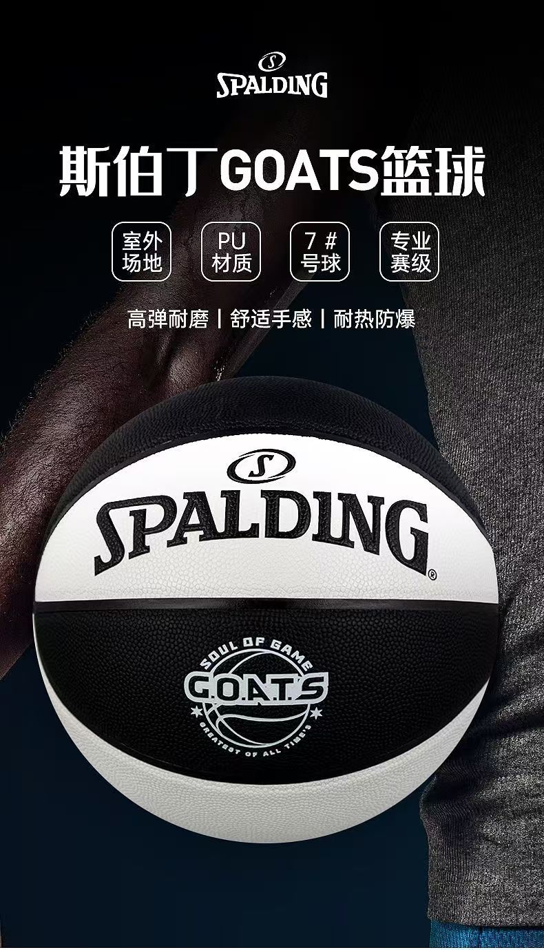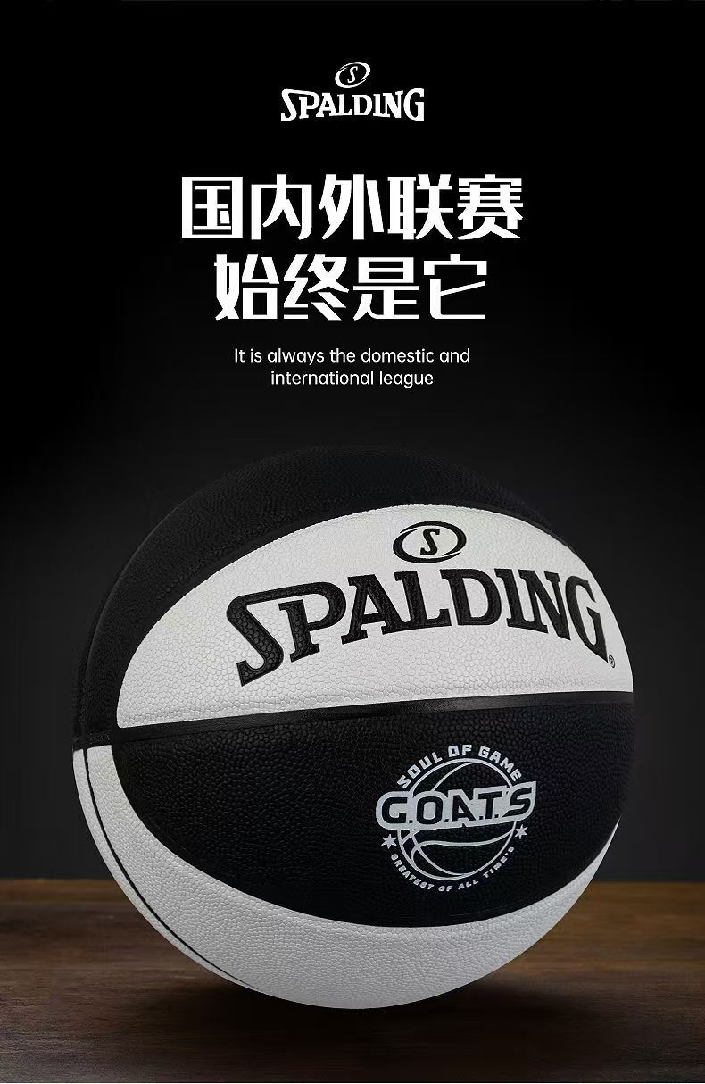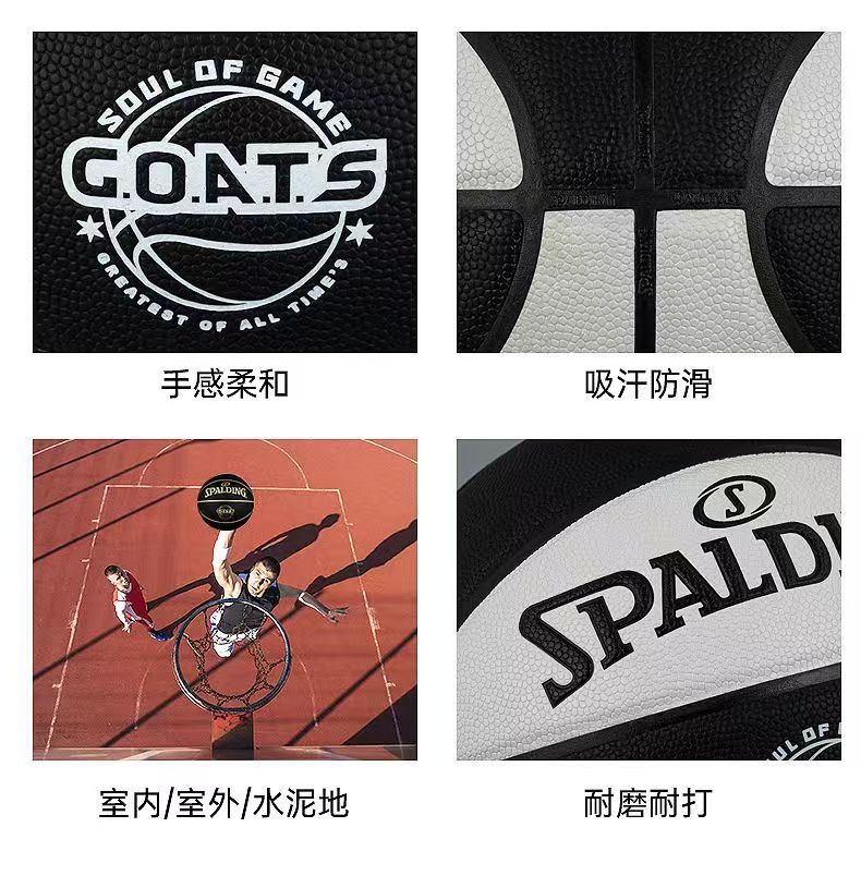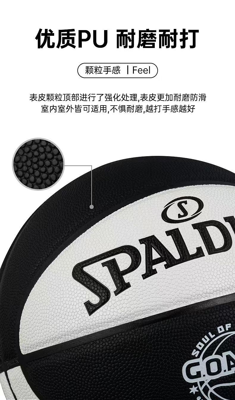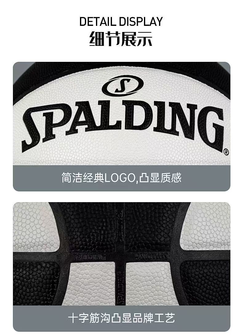 Spalding斯伯丁官方黑白拼接标准7号PU篮球室内室外训练篮球