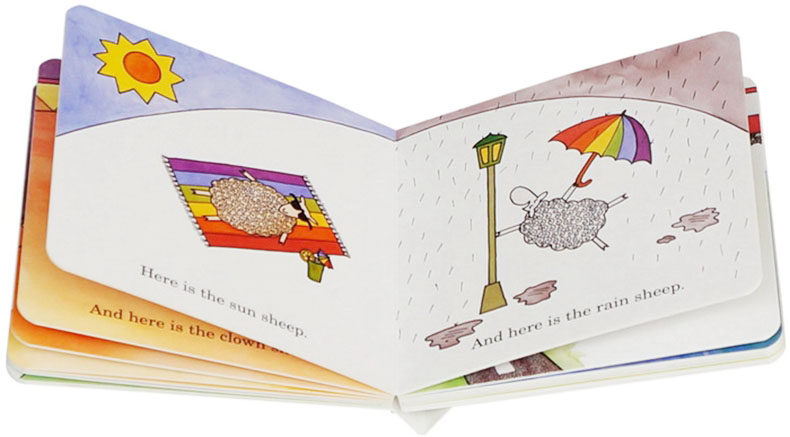 全书在间隔询问Where is the green sheep?之外只使用了唯一的句式,Here is the ... sheep,填空式的教会小盆友各种相对的词汇。