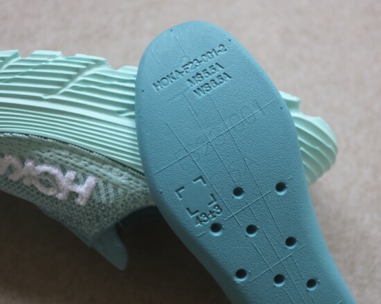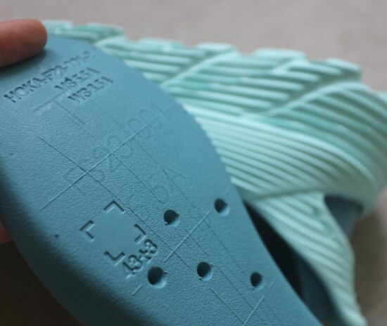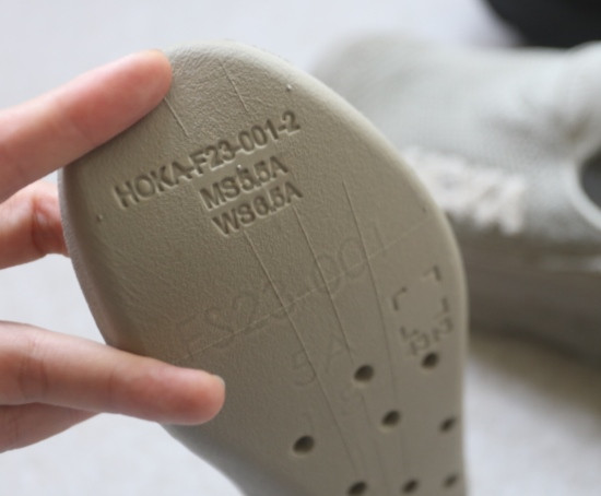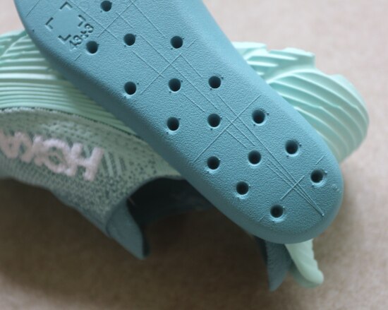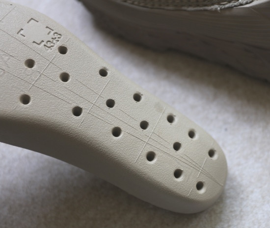 然后 鞋垫也是EVA浇注的 背面上有编码 下半段是注塑孔