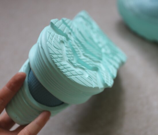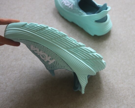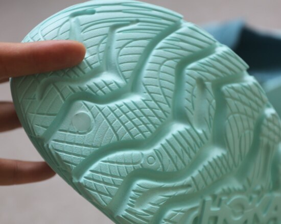 鞋底 有硬度 有很明显的弧度 凹槽比较深 提供更好的抓地力 防滑耐磨