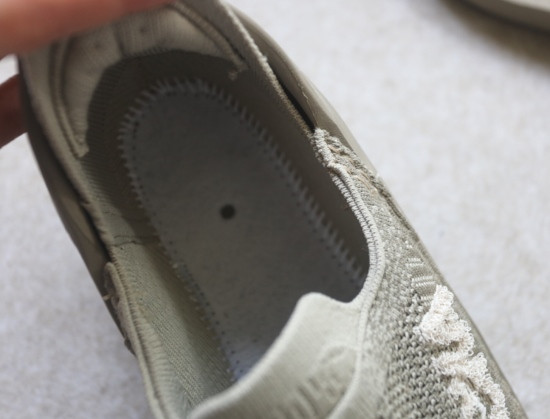 尤其是前脚掌中段 形成一个坡面 你仔细看 靠近鞋口处 会鼓起来一点点