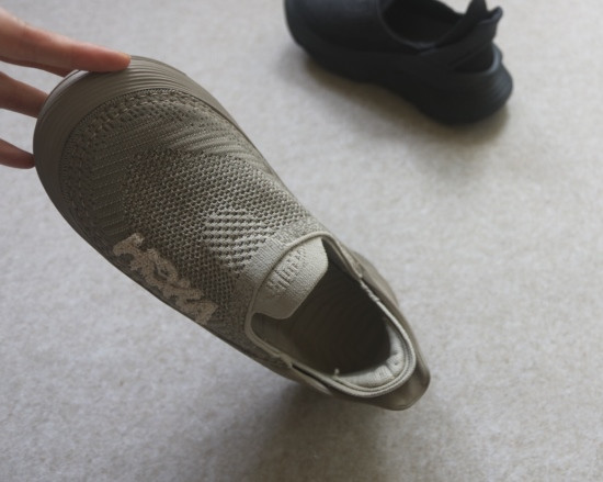 微翘式的鞋头 很典型的袜式一脚蹬 前脸和后跟都不浅 很装脚 也挺跟脚的