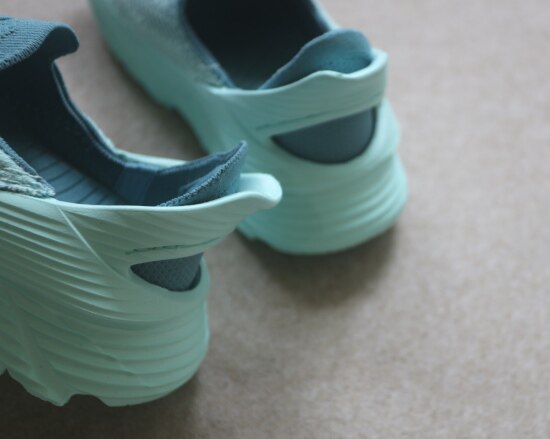 鞋头翘度 和 后跟拉长 是这款鞋的灵魂 尤其前脚掌的幅面 并不是趴平的