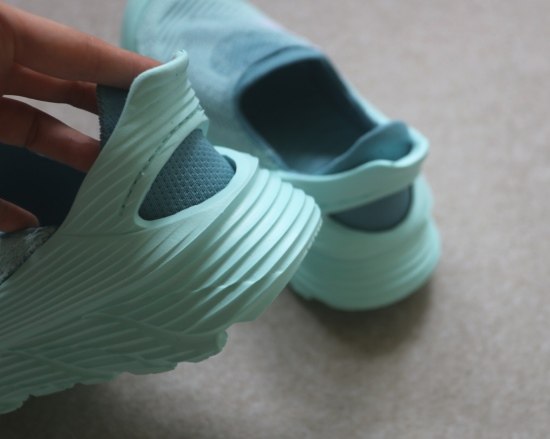 我上述提到了 虽然微大 但完全不掉跟 这鞋的后跟弧度和内承托 都相当好