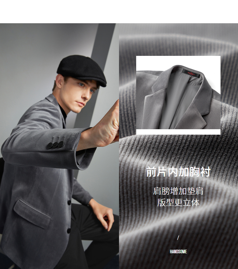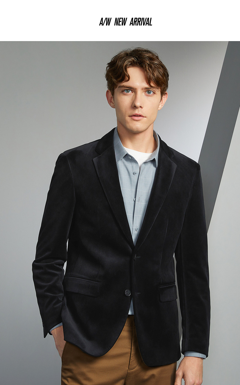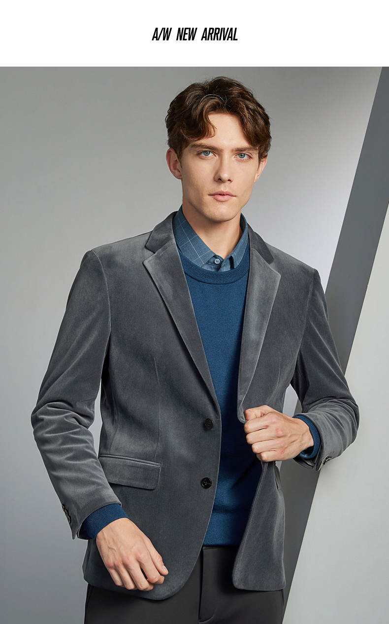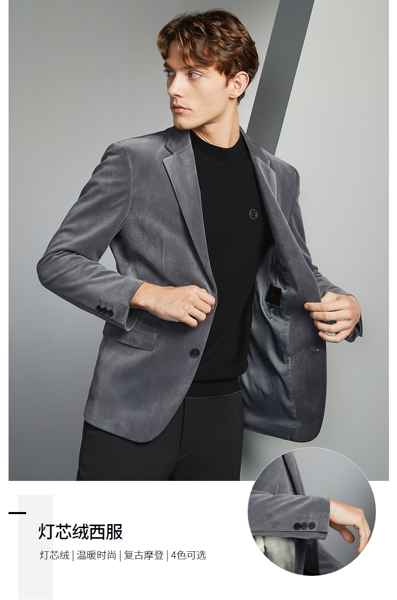 【灯芯绒】柒牌休闲西装男秋冬新款面试新郎结婚修身西服外套 125C70100