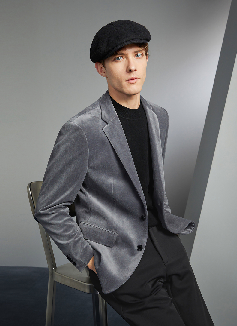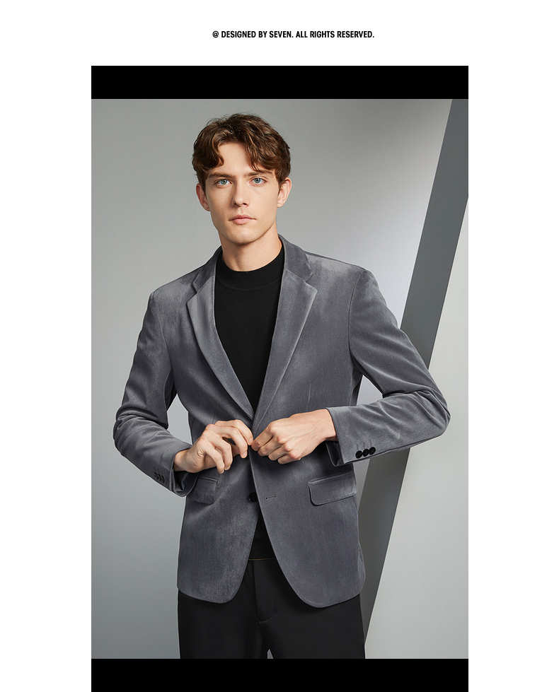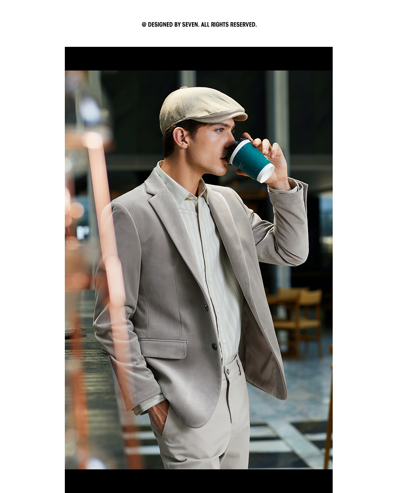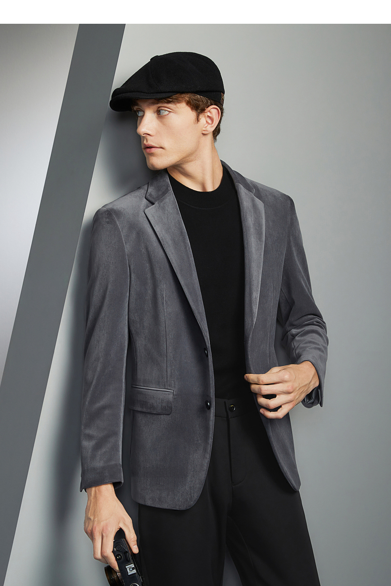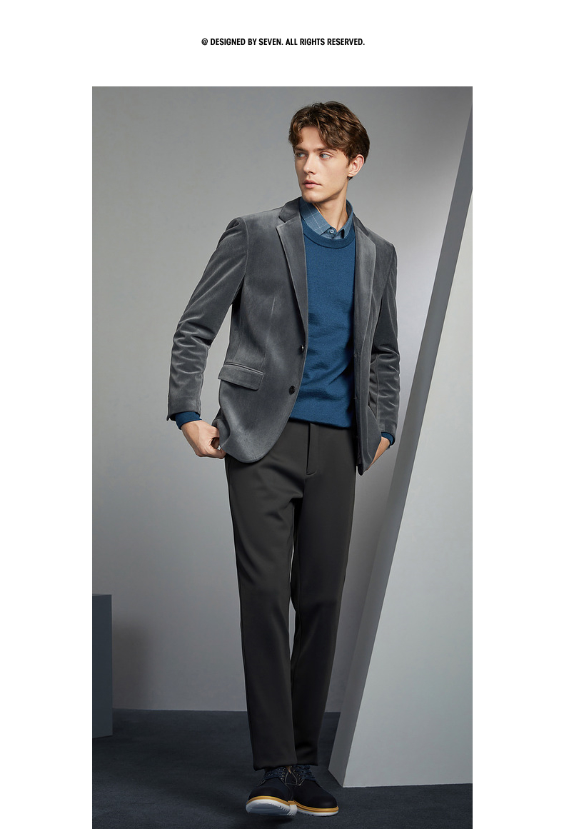 【灯芯绒】柒牌休闲西装男秋冬新款面试新郎结婚修身西服外套 125C70100