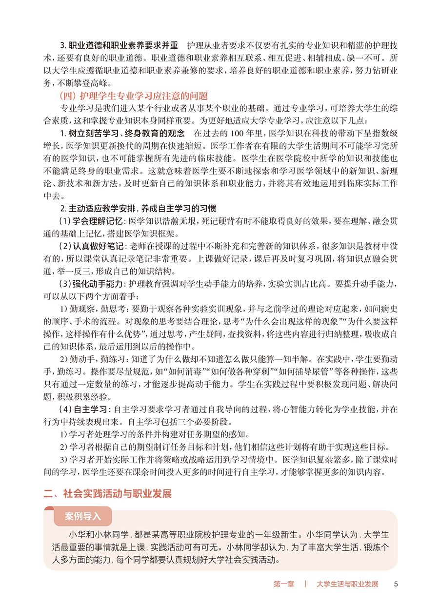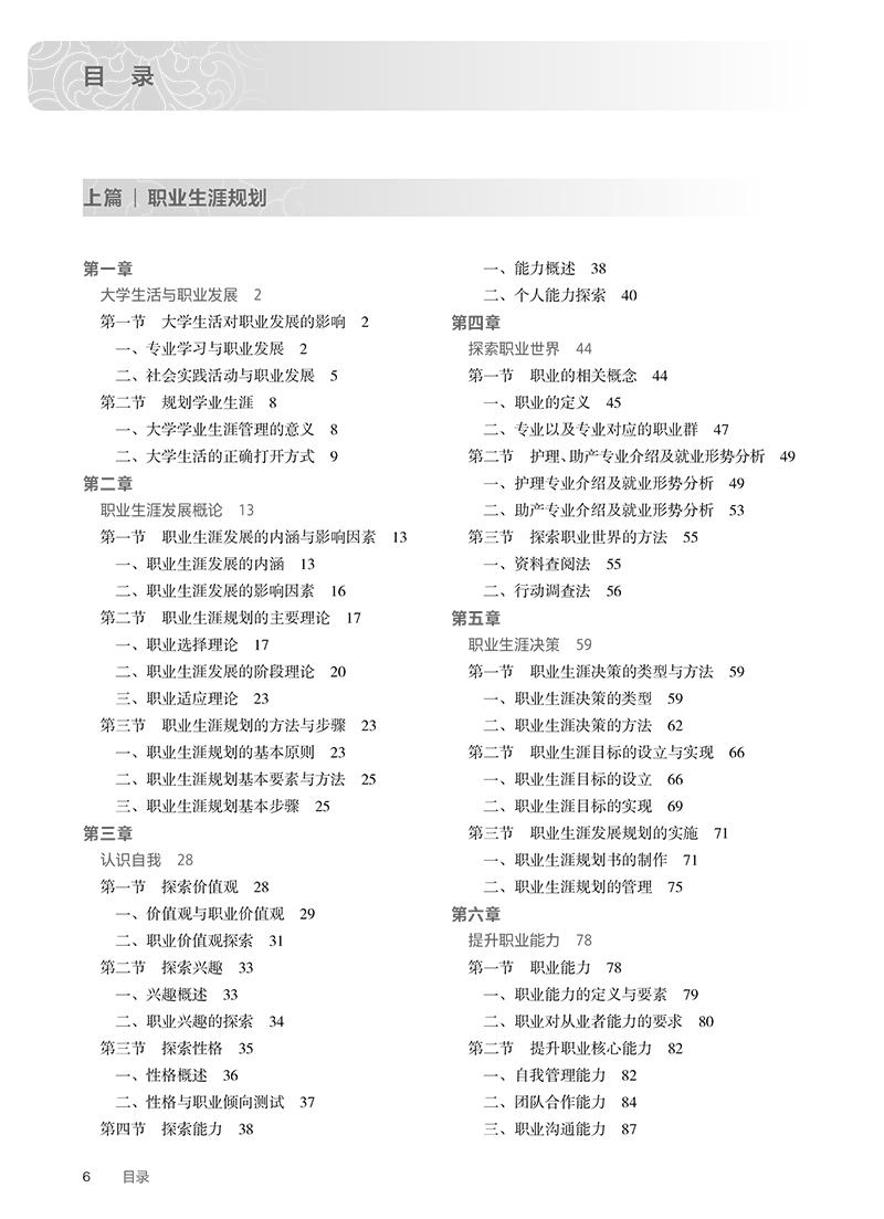 本教材为高等职业教育专科护理类专业“十四五”规划教材之一、国家卫生健康委员会“十四五”规划教材之一。本书分两部分,共10章。上篇为职业生涯规划,下篇为就业指导。围绕着大学生在校期间如何规划职业生涯、了解就业法规政策及法规、掌握求职材料编写规范、提高面试技巧、和适应职场的方法等做了全面阐述。教材吸收了当前就业指导、职业发展与创业教育的一些新观点、新理论和新方法,以树立正确就业观为核心,以职业生涯规划为主线,结合护理、助产专业学生的特点,引入就业典型案例,本教材凸显护理专业学生就业特点。在理论内容完整的基础上,突出了课程教学的实践特色,学生可以通过课后的实践训练,不断提升就业力。