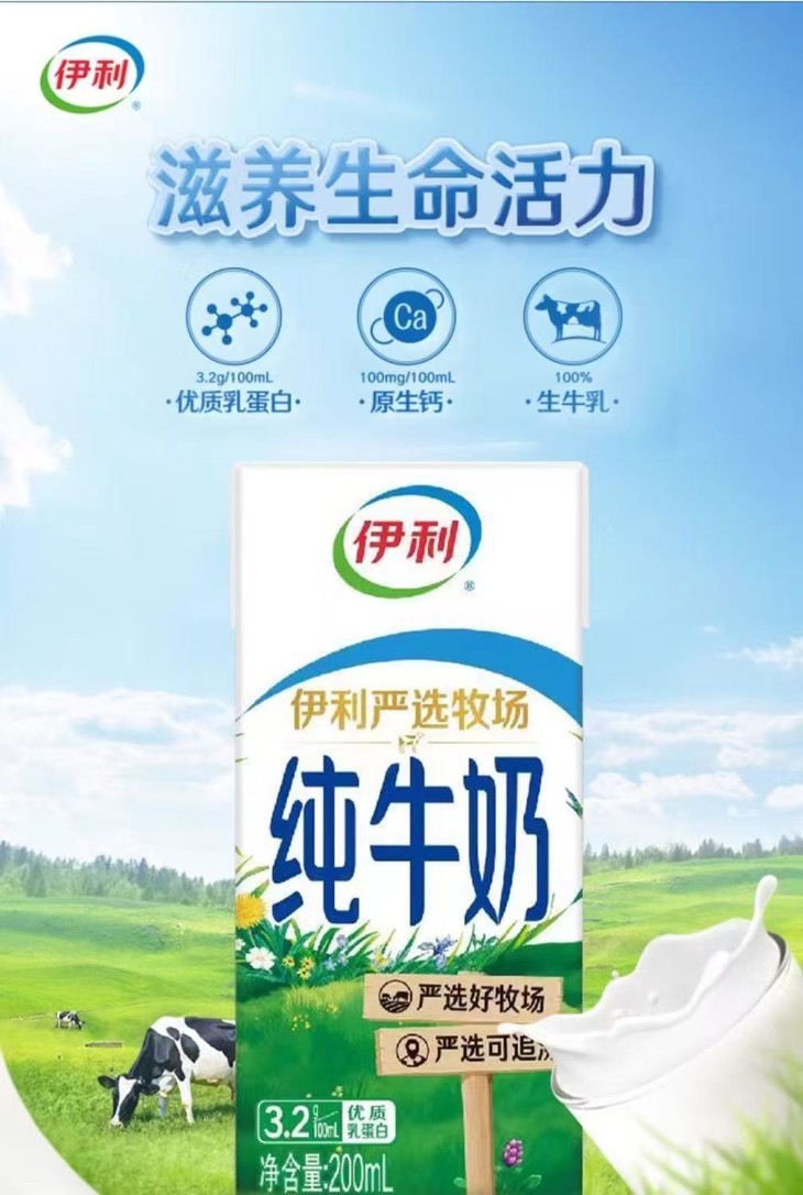 山东专属【一次到手5箱 共50盒】伊利严选牧场牛奶 无菌砖牛奶全脂生牛乳200ml*10盒/提*5提 浓醇营养 原生品质