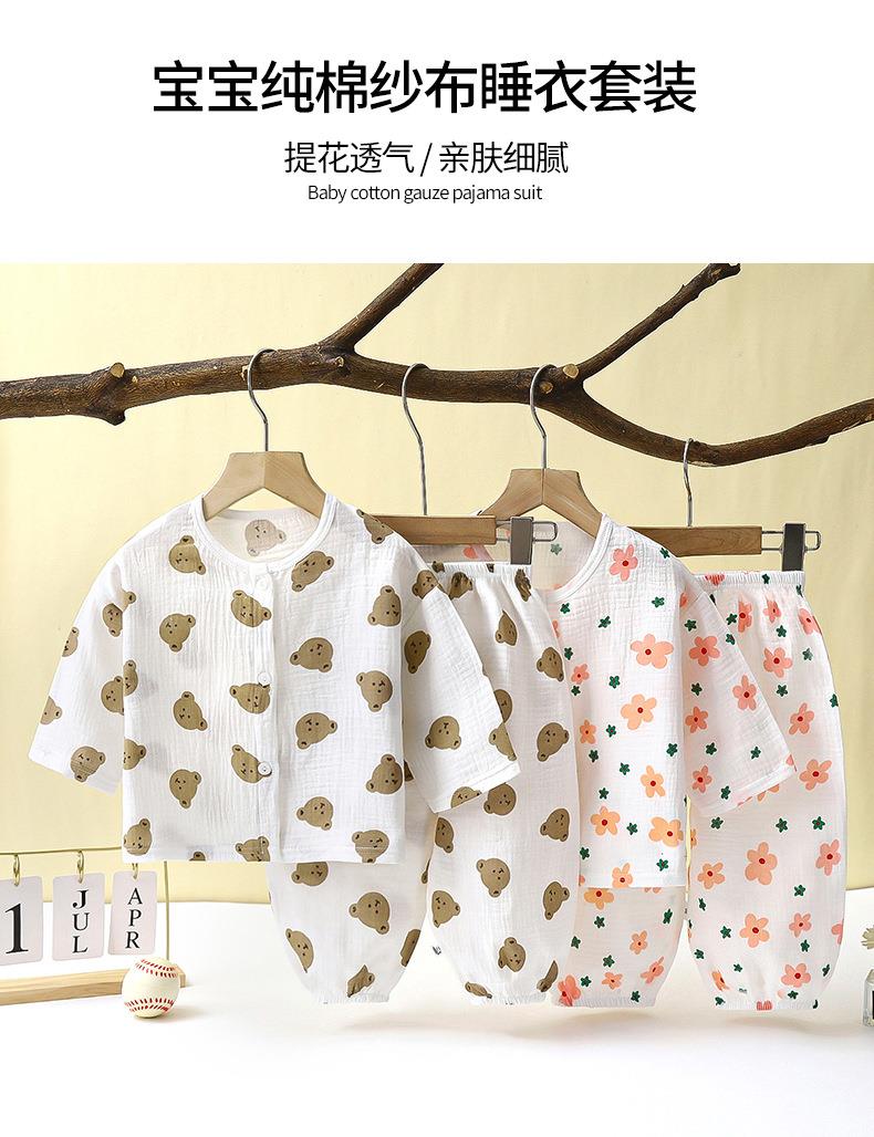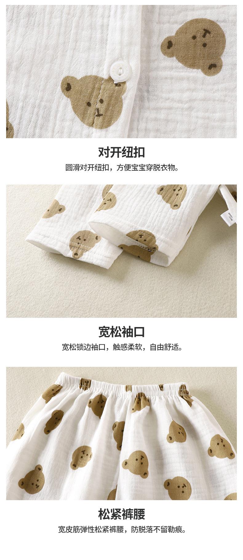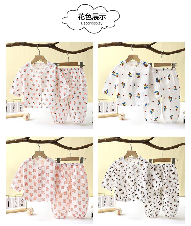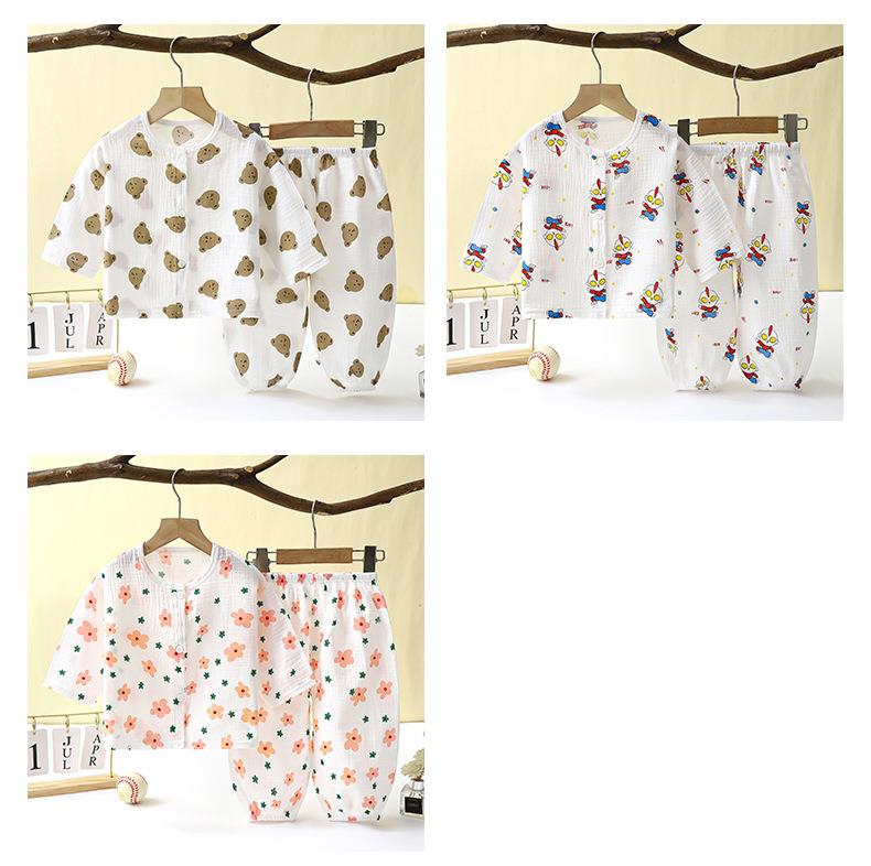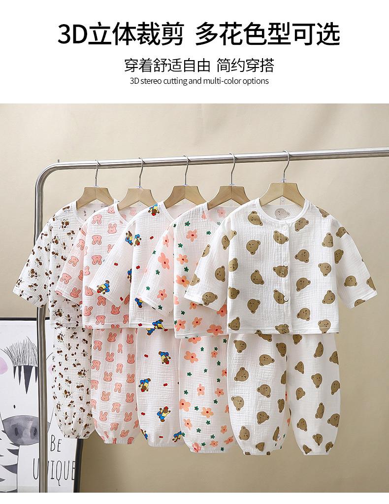 儿童薄款双层棉纱布睡衣夏季女童家居服男宝宝长袖灯笼裤套装春秋