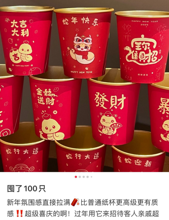 发现宝藏纸杯啦!今天要安利一个超有范儿的生活小物给你们! 就是这款极就+蛇年金箔纸一次性国潮纸杯 简直是聚会神器!每个杯子都印着精致的图案和祝福语加上内壁blingbling的金箔纸看着就高级感爆棚~ 而且哦,虽然是一次性设计,但材质安全环保,用完即弃不心疼,还能给环境减负担呢! 想象一下,亲朋好友围坐一堂,举杯共饮,每个细节都透着温馨与格调+告别一次性塑料杯的廉价感,让年味更浓,福气更满!