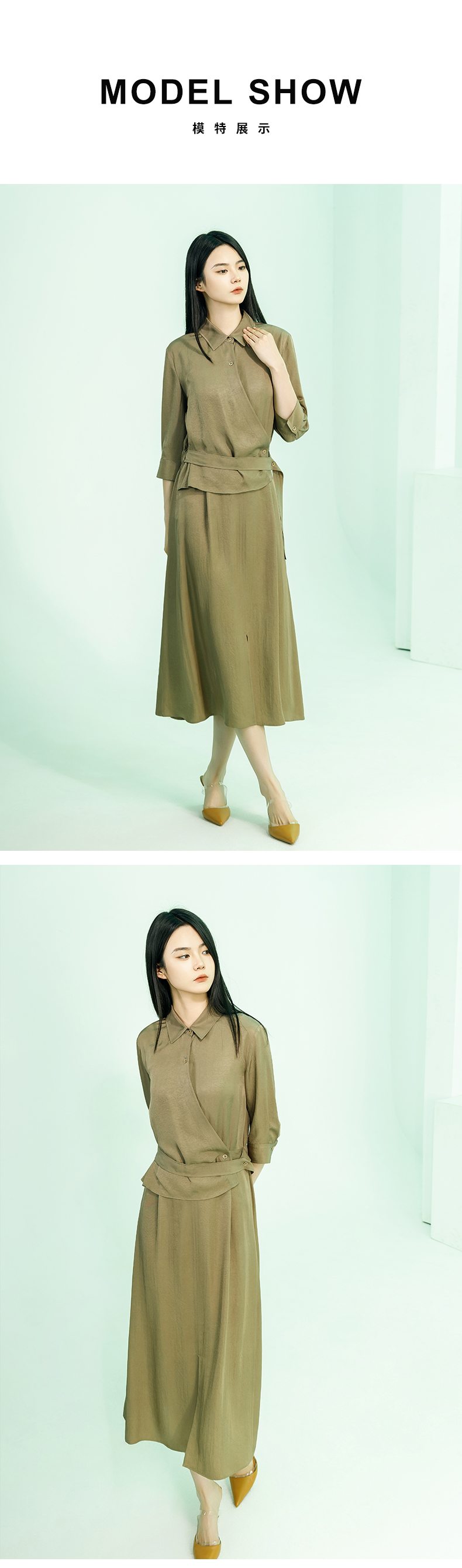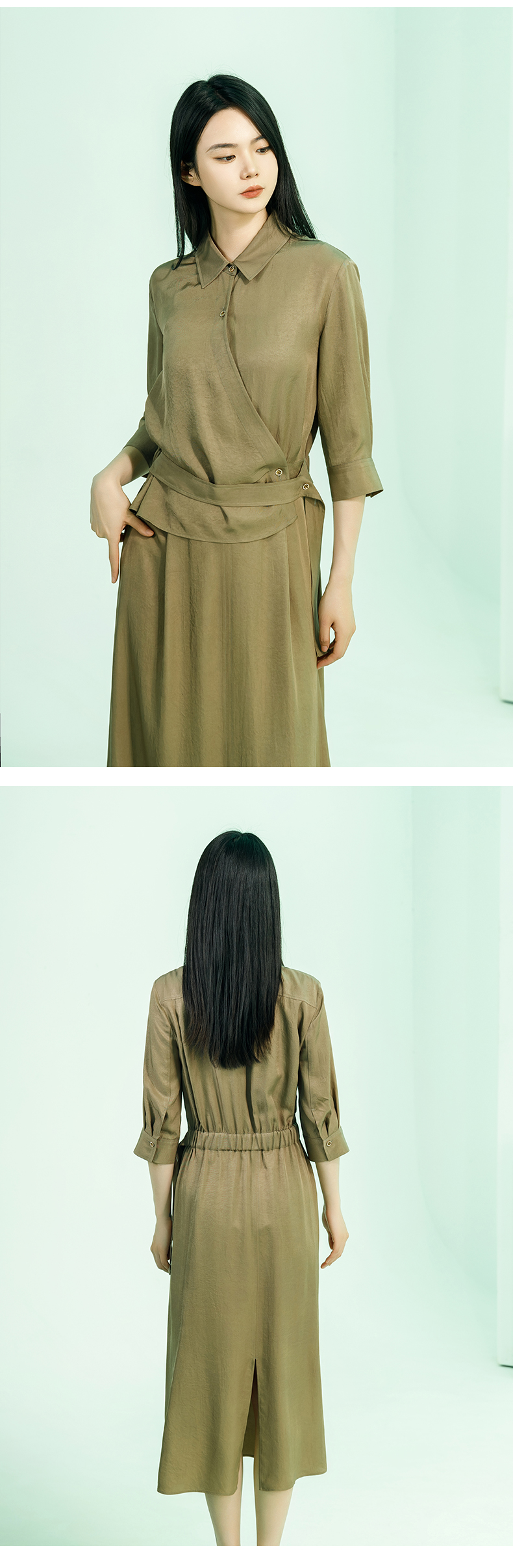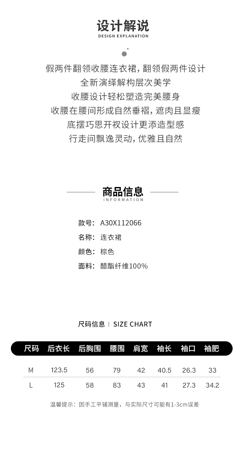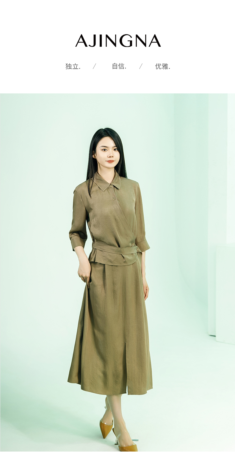 【商场同款】阿菁娜2024夏季新款假两件翻领收腰连衣裙A30X112066